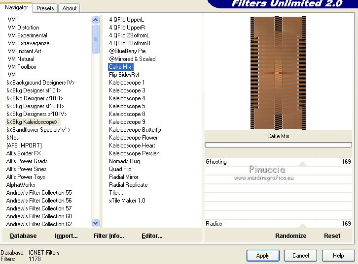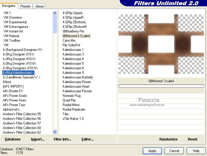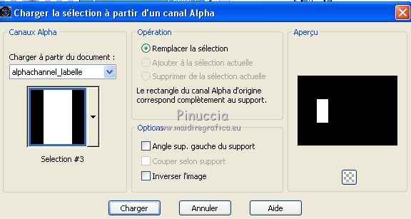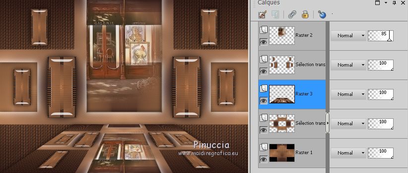 Pour traduire ce tutoriel j'ai utilisé PSPX7, mais il peut également être exécuté avec les autres versions. Suivant la version utilisée, vous pouvez obtenir des résultats différents. Depuis la version X4, la fonction Image>Miroir a été remplacée par Image>Renverser horizontalement, et Image>Renverser avec Image>Renverser verticalement . Dans les versions X5 et X6, les fonctions ont été améliorées par la mise à disposition du menu Objets. Avec la nouvelle version X7, nous avons encore Image>Miroir et Image>Renverser/Retourner, mais avec nouvelles différences. Voir les détails à ce sujet ici Certaines dénominations ont changées entre les versions de PSP. Les plus frequentes dénominations utilisées: ![]() Vos versions iciNécessaire pour réaliser ce tutoriel: Matériel ici Pour les tubes merci AngelStar. Le reste du matériel est de Maria José. (les liens des sites des tubeuses ici) Modules Externes: consulter, si nécessaire, ma section des filtres ici Filters Unlimited 2.0 ici Mehdi - Sorting Tiles, Weaver ici &<Bkg Kaleidoscope> - Cake Mix - Mirrored &Scaled (à importer dans Unlimited) ici AP Lines - Lines SilverLining ici Graphics Plus - Vertical Mirror ici AAA Filters - Custom / AAA Frames - Foto Frame ici Carolaine and Sensibility - CS-HLines, CS-Linear-H ici Filtres Graphics Plus peuvent être utilisés seuls ou importés dans Filters Unlimited. voir comment le faire ici). Si un filtre est fourni avec cette icône, ![]() en fonction des couleurs utilisées, vous pouvez changer le mode mélange et l'opacité des calques. Dans les plus récentes versions de PSP, vous ne trouvez pas le dégradé d'avant plan/arrière plan ou Corel_06_029. Vous pouvez utiliser le dégradé des versions antérieures. Ici le dossier Dégradés de CorelX. Placer le preset En cliquant sur le preset une ou deux fois (selon vos réglages) automatiquement il se placera directement dans le dossier Settings de Alien Skin Eye Candy. pourquoi un ou deux clic voir ici Placer la texture Lino dans le dossier Textures. Placer en avant plan la couleur #4e3028, et en arrière plan la couleur #bb8155. ![]() Préparer en avant plan un dégradé de premier plan/arrière plan, style Linéaire. ![]() 1. Ouvrir alphachannel_labelle. Fenêtre>Dupliquer, ou sur le clavier shift+D, pour faire une copie ![]() Fermer l'original. La copie, qui sera la base de votre travail, n'est pas vide, mais contient les sélections enregistrées sur le canal alpha. Remplir l'image transparente du dégradé.2. Effets>Effets de textures>Texture - sélectionner la texture Lino avec ces réglages. ![]() 3. Effets>Modules Externes>Mehdi - Sorting Tiles. ![]() 4. Effets>Modules Externes>Mehdi - Weaver ![]() 5. Effets>Effets de réflexion>Miroir rotatif. ![]() 6. Sélections>Sélections>Charger/Enregistrer une sélection>Charger à partir d'un canal alpha. La sélection #1 s est déjà disponible. On doit seulement cliquer sur Charger. ![]() Sélections>Inverser. 7. Effets>Effets de textures>Textile couleur du tissage #160402. ![]() 8. Effets>Modules Externes>AP[Lines] - SilverLining. ![]() Sélections>Inverser. Sélections>Transformer la sélection en calque. 9. Réglage>Flou>Flou gaussien - rayon 30. ![]() Sélections>Désélectionner tout. 10. Effets>Modules Externes>Filters Unlimited 2.0 - &<Bkg Kaleidoscope> - @Mirrored & Scaled. ![]() 11. Sélections>Charger/Enregistrer une sélection>Charger à partir d'un canal alpha. Ouvrir le menu des sélections et charger la sélection #2. ![]() ![]() Presser CANC sur le clavier ![]() ![]() 12. Sélections>Inverser. Effets>Effets 3D>Ombre portée, couleur noire. ![]() Sélections>Désélectionner tout. 13. Effets>Modules Externes>Carolaine and Sensibility - CS-DLines, par défaut. ![]() Vous positionner sur le calque Raster 1. 14. Sélections>Charger/Enregistrer une sélection>Charger à partir d'un canal alpha. Ouvrir le menu des sélections et charger la sélection #3. ![]() Sélections>Transformer la sélection en calque. Calques>Agencer>Placer en haut de la pile. 15. Effets>Modules Externes>AAA Frames - Foto Frame. ![]() 16. Effets>Modules Externes>Carolaine and Sensibility - CS-Linear-H ![]() 17. Effets>Modules Externes>Filters Unlimited 2.0 - &<Bkg Kaleidoscope> - Cake Mix, par défaut. ![]() 18. Effets>Modules Externes>Alien Skin Eye Candy 5 Impact - Glass sélectionner le preset glass_majo e ok. ![]() Sélections>Désélectionner tout. 19. Effets>Modules Externes>Graphics Plus - Vertical Mirror, par défaut. ![]() 20. Calques>Dupliquer. Image>Redimensionner, à 60%, redimensionner tous les calques décoché. Effets>Effets d'image>Décalage. ![]() Calques>Dupliquer. Effets>Effets d'image>Décalage. ![]() 21. Calques>Fusionner>Fusionner le calque de dessous - 2 fois. Effets>Effets 3D>Ombre portée, comme précédemment. ![]() 22. Effets>Effets de réflexion>Miroir rotatif. ![]() 23. Sélections>Charger/Enregistrer une sélection>Charger à partir d'un canal alpha. Ouvrir le menu des sélections et charger la sélection #4. ![]() 24. Ouvrir le misted - Édition>Copier. Revenir sur votre travail et Édition>Coller comme nouveau calque. Réduire l'opacité de ce calque à 85%. 25. Sélections>Inverser. Presser CANC sur le clavier ![]() Effets>Effets 3D>Ombre portée, couleur noire. ![]() Sélections>Désélectionner tout. 25. Édition>Copie Spéciale>Copier avec fusion. 26. Édition>Coller comme nouveau calque. Image>Renverser. 27. Effets>Effets géométriques>Perspective verticale. ![]() 28. Activer l'outil Sélecteur ![]() et placer ces paramètres ![]() Calques>Agencer>Déplacer vers le bas - 2 fois ![]() Effets>Effets 3D>Ombre portée, couleur noire. ![]() 30. Vous positionner sur le calque Raster 1. Ouvrir le tube deco marijo_mj - Édition>Copier. Revenir sur votre travail et Édition>Coller comme nouveau calque. Placer le calque en mode Luminance (héritée). ![]() Calques>Fusionner>Calques visibles. 31. Optionnel: Effets>Modules Externes>AAA Filters - Custom - Landscape !