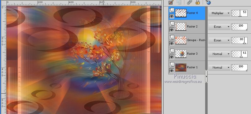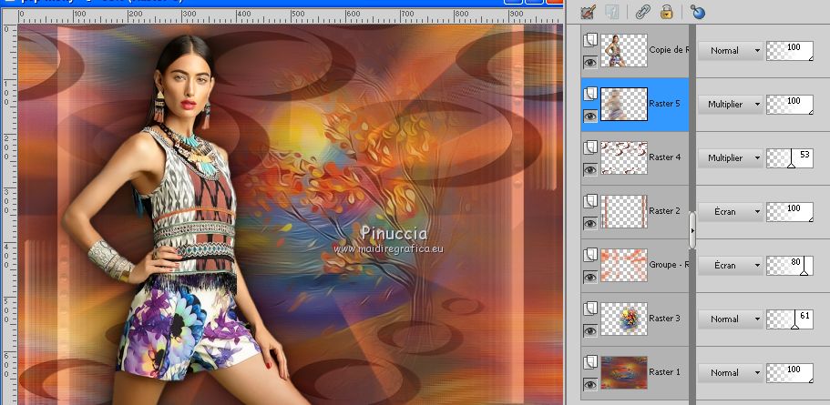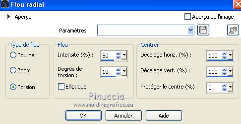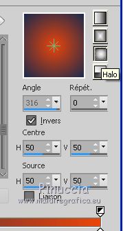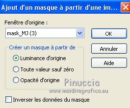 Pour traduire ce tutoriel j'ai utilisé PSPX7, PSPX2 et PSPX3, mais il peut également être exécuté avec les autres versions. Suivant la version utilisée, vous pouvez obtenir des résultats différents. Depuis la version X4, la fonction Image>Miroir a été remplacée par Image>Renverser horizontalement, et Image>Renverser avec Image>Renverser verticalement . Dans les versions X5 et X6, les fonctions ont été améliorées par la mise à disposition du menu Objets. Avec la nouvelle version X7, nous avons encore Image>Miroir et Image>Renverser/Retourner, mais avec nouvelles différences. Voir les détails à ce sujet ici Certaines dénominations ont changées entre les versions de PSP. Les plus frequentes dénominations utilisées: ![]() English translation here Vos versions iciNécessaire pour réaliser ce tutoriel: Matériel ici Pour les tubes merci Angel Star. Le reste du matériel est de Maria José. (ici les liens vers les sites des créateurs du matériel) Modules Externes: consulter, si nécessaire, ma section des filtres ici Filters Unlimited 2.0 ici &<Bkg Designer sf10II> - DIS Refractor 1 (à importer dans Unlimited) ici Mura's Seamless - Emboss at Alpha ici Mura's Meister - Copies ici Alien Skin Eye Candy 5 Impact - Extrude ici Simple - Top Bottom Wrap (bonus) ici Filtres Simple et Mura's Seamless peuvent être utilisés seuls ou importés dans Filters Unlimited. voir comment le faire ici). Si un filtre est fourni avec cette icône, ![]() en fonction des couleurs utilisées, vous pouvez changer le mode mélange et l'opacité des calques. Dans les plus récentes versions de PSP, vous ne trouvez pas le dégradé d'avant plan/arrière plan ou Corel_06_029. Vous pouvez utiliser le dégradé des versions antérieures. Ici le dossier Dégradés de CorelX. Placer le preset En cliquant sur le preset une ou deux fois (selon vos réglages) automatiquement il se placera directement dans le dossier Settings de Alien Skin Eye Candy. pourquoi un ou deux clic voir ici Placer la sélection dans le dossier Sélections. Ouvrir le masque dans PSP et le minimiser avec le reste du matériel. Placer en avant plan la couleur #192b4d, et en arrière plan la couleur #eb440b. ![]() Préparer en avant plan un dégradé de premier plan/arrière plan, style Halo. ![]() 1. Ouvrir une nouvelle image transparente 1000 x 700 pixels. Remplir l'image transparente du dégradé.2. Sélections>Sélectionner tout. Ouvrir le misted et Édition>Copier. Revenir sur votre travail et Édition>Coller dans la sélection. Sélections>Désélectionner tout. 3. Effets>Effets d'image>Mosaïque sans jointures. ![]() 4. Réglage>Flou>Flou radial. ![]() 5. Répéter Effets>Effets d'image>Mosaïque sans jointures. ![]() 6. Effets>Modules Externes>Filters Unlimited 2.0 - &<Bkg Designer sf10II> - DIS Refractor 1. ![]() 7. Effets>Effets de bords>Accentuer. 8. Calques>Nouveau calque raster. Réduire l'opacité de l'outil Pot de peinture a 80%. Remplir le calque avec la couleur claire d'arrière plan #eb440b.9. Calques>Nouveau calque de masque>A partir d'une image. Ouvrir le menu deroulant sous la fenêtre d'origine et vous verrez la liste des images ouvertes. Sélectionner le masque mask_MJ(3). ![]() Calques>Fusionner>Fusionner le groupe. 10. Effets>Modules Externes>Mura's Seamless - Emboss at Alpha, par défaut. ![]() Placer le calque en mode Écran et réduire l'opacité à 80%. ![]() 11. Ouvrir le tube decomony_mj - Édition>Copier. Revenir sur votre travail et Édition>Coller comme nouveau calque. Placer le calque en mode Écran. 12. Activer à nouveau le misted - Édition>Copier. Revenir sur votre travail et Édition>Coller comme nouveau calque. Image>Miroir. Positionner bien le tube.Calques>Agencer>Déplacer vers le bas - 2 fois. Réduire l'opacité, si nécessaire, +/- 61%. ![]() 13. Calques>Nouveau calque raster. Calques>Agencer>Placer en haut de la pile. 14. Sélections>Charger/Enregistrer une sélection>Charger à partir du disque. Chercher et charger la sélection elipse_mj ![]() Placer en avant plan la couleur blanche #ffffff Placer à nouveau l'opacité de l'outil Pot de peinture à 100. Remplir la sélection avec la couleur blanche.15. Sélections>Modifier>Contracter - 20 pixels. Presser CANC sur le clavier ![]() Sélections>Désélectionner tout. 16. Effets>Modules Externes>Alien Skin Eye Candy 5 Impact - Extrude. Sélectionner le preset mony_mj. si vous utilisez des autres couleurs, régler Solid Color avec votre couleur d'arrière plan ![]() 17. Effets>Effets d'image>Décalage. ![]() 18. Effets>Modules Externes>Mura's Meister - Copies. ![]() 19. Effets>Modules Externes>Simple - Top Bottom Wrap. L'effet travaille sans fenêtre; résultat ![]() 20. Effets>Effets d'image>Mosaïque sans jointures. ![]() Image>Renverser. 21. Placer le calque en mode Multiplier et réduire l'opacité +/-53%. 22. Effets>Effets de bords>Accentuer. ![]() 23. Ouvrir le tube de la femme - Édition>Copier. Revenir sur votre travail et Édition>Coller comme nouveau calque. Image>Redimensionner, à 83%, redimensionner tous les calques décoché. Déplacer le tube à gauche.24. Calques>Dupliquer. Vous positionner sur le calque de dessous de l'original. Réglage>Flou>Flou radial, comme précédemment. ![]() Placer le calque en mode Multiplier. La tag et les calques (adapter Modes mélange et opacitées selon vos couleurs) ![]() 25. Image>Ajouter des bordures, 1 pixel, symétrique, couleur noire. 26. Sélections>Sélectionner tout. Édition>Copier. Image>Ajouter des bordures, 50 pixels, symétrique, couleur blanche. 27. Sélections>Inverser. Édition>Coller dans la sélection. 28. Réglage>Flou>Flou radial, comme précédemment. ![]() 29. Réglage>Netteté>Davantage de netteté. Effets>Effets 3D>Ombre portée, couleur noire. ![]() 30. Sélections>Sélectionner tout. Sélections>Modifier>Contracter - 30 pixels. Effets>Effets 3D>Ombre portée, comme précédemment. 31. Sélections>Sélectionner tout. Sélections>Modifier>Contracter - 15 pixels. Effe