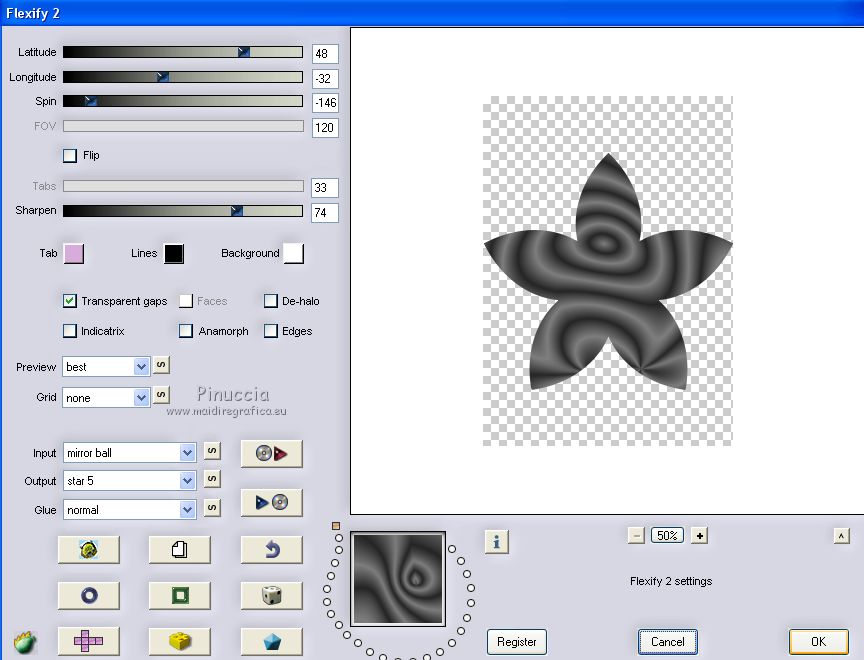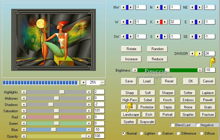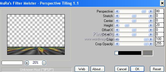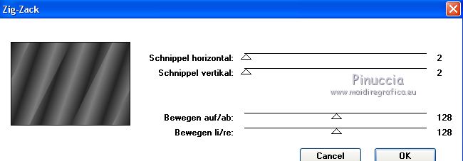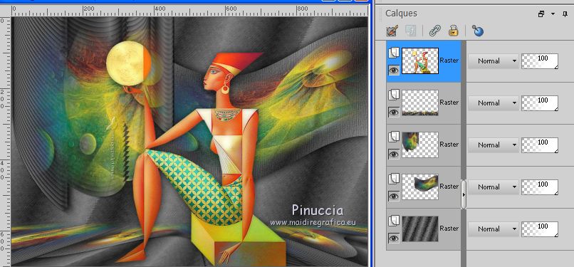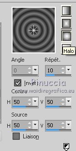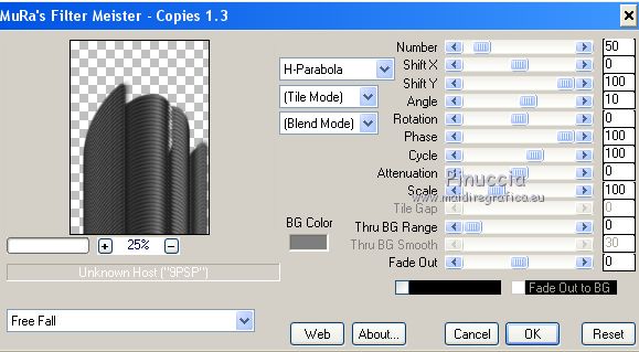 Pour traduire ce tutoriel j'ai utilisé CorelX17, mais il peut également être exécuté avec les autres versions. Suivant la version utilisée, vous pouvez obtenir des résultats différents. Depuis la version X4, la fonction Image>Miroir a été remplacée par Image>Renverser horizontalement, et Image>Renverser avec Image>Renverser verticalement . Dans les versions X5 et X6, les fonctions ont été améliorées par la mise à disposition du menu Objets. Avec la nouvelle version X7, nous avons encore Image>Miroir et Image>Renverser/Retourner, mais avec nouvelles différences. Voir les détails à ce sujet ici Certaines dénominations ont changées entre les versions de PSP. Les plus frequentes dénominations utilisées: ![]() Vos versions iciNécessaire pour réaliser ce tutoriel: Matériel ici Merci pour les tubes Suizabella et Jewel. Le reste du matériel est de Maria José. (ici les liens vers les sites des créateurs de tubes) Modules Externes: consulter, si nécessaire, ma section des filtres ici Filters Unlimited 2.0 ici Brush Strokes - Angle Strokes ici Flaming Pear - Flexify 2 ici Kiwi ici Carolaine and Sensibility - CS-Halloween 2 ici AAA Frames - Foto Frame / AAA Filters - Custom ici Mura's Meister - Copies ici Mura's Meister - Perspective Tiling ici Filtres Kiwi peuvent être utilisés seuls ou importés dans Filters Unlimited. voir comment le faire ici). Si un filtre est fourni avec cette icône, ![]() en fonction des couleurs utilisées, vous pouvez changer le mode mélange et l'opacité des calques. Dans les plus récentes versions de PSP, vous ne trouvez pas le dégradé d'avant plan/arrière plan ou Corel_06_029. Vous pouvez utiliser le dégradé des versions antérieures. Ici le dossier Dégradés de CorelX. Placer la texture dans le dossier Textures Placer les sélections dans le dossier Sélections Placer en avant plan la couleur #252525, et en arrière plan la couleur #7e7e7e. ![]() Préparer en avant plan un dégradé de premier plan/arrière plan, style Halo. ![]() Préparer en arrière plan un dégradé de premier plan/arrière plan, style Linéaire. ![]() ![]() 1. Ouvrir une nouvelle image transparente 500 x 700 pixels. Remplir l'image transparente avec le dégradé d'avan plan.2. Effets>Modules Externes>Flaming Pear - Flexify 2. ![]() 3. Effets>Effets 3D>Ombre portée, couleur noire. ![]() 4. Effets>Effets de distorsion>Coordonnées polaires. ![]() 5. Effets>Modules Externes>Mura's Meister - Copies. ![]() Image>Renverser. 6. Objets>Aligner>Gauche Si vous travaillez avec une nouvelle version qui ne rends pas disponible le menu Objets, activer l'outil sélecteur ![]() et placer Position horiz. à 0,00 ![]() 7. Image>Taille du support - 1000 x 700 pixels ![]() 8. Sélections>Sélectionner tout. Sélections>Flottante. Sélections>Statique. Calques>Nouveau calque raster. 9. Ouvrir le misted et Édition>Copier. Revenir sur votre travail et Édition>Coller dans la sélection. Réduire l'opacité de ce calque à 80%, ou à votre goût. Calques>Fusionner>Fusionner le calque de dessous. Sélections>Désélectionner tout. 10. Calques>Nouveau calque raster. Calques>Agencer>Placer en bas de la pile. Remplir le calque avec le dégradé d'arrière plan.11. Réglage>Ajouter/Supprimer du bruit>Ajouter du bruit. ![]() 12. Effets>Modules Externes>Brush Strokes - Angle Strokes, par défaut. ![]() 13. Effets>Effets géométriques>Inclinaison. ![]() Édition>Répéter Inclinaison. 14. Effets>Modules Externes>Kiwi - Zig Zack, par défaut. ![]() 15. Sélections>Charger/Enregistrer une sélection>Charger à partir du disque. Chercher et charger la sélection natucolor_mj ![]() Calques>Nouveau calque raster. Remplir le calque avec le dégradé d'arrière plan.16. Réglage>Ajouter/Supprimer du bruit>Ajouter du bruit, comme précédemment. ![]() 17. Effets>Effets de textures>Texture - sélectionner la texture 8SUIZA ![]() 18. Calques>Nouveau calque raster. Édition>Coller dans la sélection (le misted est toujours en mémoire). ![]() 19. Réglage>Netteté>Netteté. Réduire l'opacité de ce calque à 80%. Calques>Fusionner>Fusionner le calque de dessous. Sélections>Désélectionner tout. Effets>Effets 3D>Ombre portée, couleur noire. ![]() 20. Effets>Effets de distorsion>Vagues. ![]() 21. Effets>Effets d'image>Décalage. ![]() Effets>Effets 3D>Ombre portée, comme précédemment. ![]() 22. Vous positionner sur le calque Raster 1. Édition>Copie Spéciale. Édition>Copier avec fusion. Édition>Coller comme nouveau calque. 23. Image>Miroir. Image>Renverser. 24. Effets>Modules Externes>Mura's Meister - Perspective Tiling. ![]() 25. Sélections>Charger/Enregistrer une sélection>Charger à partir du disque. Chercher et charger la sélection natucolor_1_mj ![]() Presser +/- 8 fois CANC sur le clavier ![]() Sélections>Désélectionner tout. 26. Ouvrir le tube de la femme kurasov_mj - Édition>Copier. Revenir sur votre travail et Édition>coller comme nouveau calque. Image>Miroir. Positionner bien le tube.Effets>Effets 3D>Ombre portée, à choix. La tag et les calques ![]() 27. Image>Ajouter des bordures, 10 pixels, symétrique, couleur claire. Image>Ajouter des bordures, 10 pixels, symétrique, couleur foncée. Image>Ajouter des bordures, 10 pixels, symétrique, couleur claire. 28. Sélections>Sélectionner tout. Sélections>Modifier>Contracter - 30 pixels. Sélections>Inverser. 29. Effets>Modules Externes>Carolaine and Sensibility - CS_Halloween, par défaut. ![]() 30. Réglage>Netteté>Davantage de netteté. Effets>Effets 3D>Ombre porté, couleur noire. ![]() 31. Effets>Effets de réflexion>Miroir rotatif. ![]() 32. Garder sélectionné. Édition>Copier. Sélections>Sélectionner tout. 33. Image>Ajouter des bordures, 30 pixels, symétrique, couleur blanche. Sélections>Inverser. 34. Édition>Coller dans la sélection. Effets>Effets 3D>Ombre portée, couleur noire. ![]() Sélections>Désélectionner tout. Image>Ajouter des bordures, 1 pixel, symétrique, couleur foncée. 35. Signer votre tra
