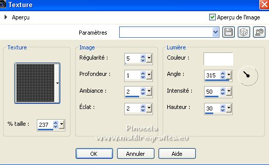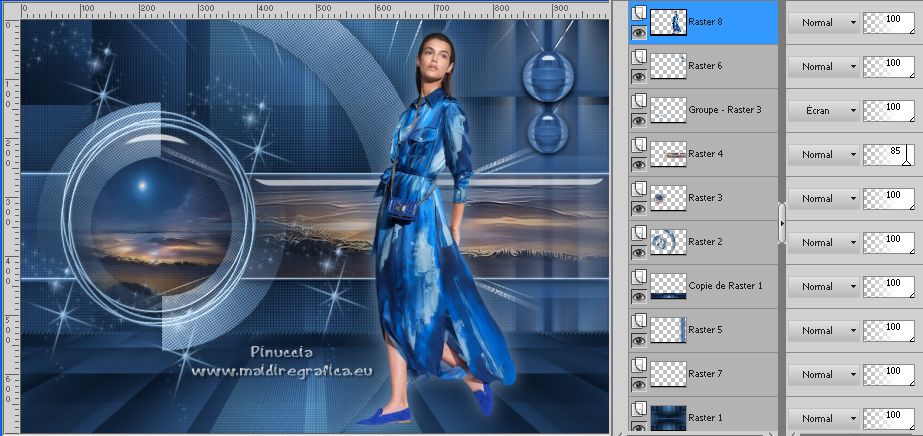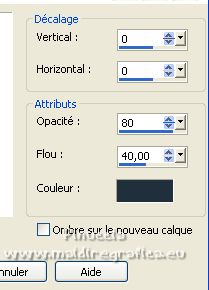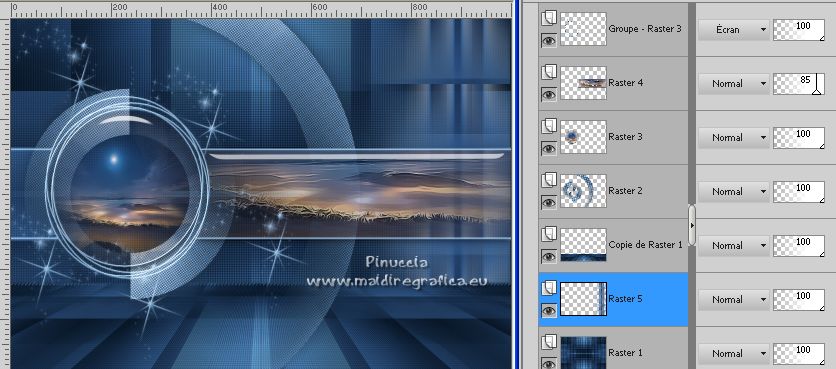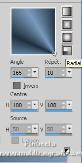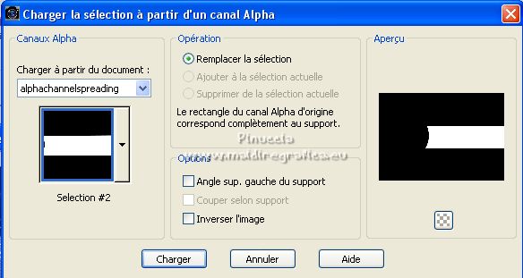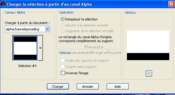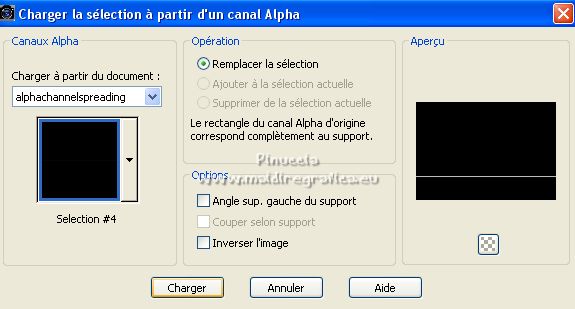 Pour traduire ce tutoriel j'ai utilisé PSPX7, PSPX2 et PSPX3, mais il peut également être exécuté avec les autres versions. Suivant la version utilisée, vous pouvez obtenir des résultats différents. Depuis la version X4, la fonction Image>Miroir a été remplacée par Image>Renverser horizontalement, et Image>Renverser avec Image>Renverser verticalement . Dans les versions X5 et X6, les fonctions ont été améliorées par la mise à disposition du menu Objets. Avec la nouvelle version X7, nous avons encore Image>Miroir et Image>Renverser/Retourner, mais avec nouvelles différences. Voir les détails à ce sujet ici Certaines dénominations ont changées entre les versions de PSP. Les plus frequentes dénominations utilisées: ![]() English translation here Vos versions ici![]() Nécessaire pour réaliser ce tutoriel: Matériel ici Pour le tube et le masque merci Nena Silva et Narah. Le reste du matériel est de Maria José. (ici les liens vers les sites des créateurs du matériel) Modules Externes: consulter, si nécessaire, ma section des filtres ici Filters Unlimited 2.0 ici Mehdi - Sorting Tiles ici Italian Editors Effect - Effetto Fantasma ici Simple - Top Left Mirror ici Mura's Seamless - Emboss at Alpha ici Mura's Meister - Perspective Tiling ici Kiwi Oelfilter - Zig-Zack ici Graphics Plus - Cross Shadow ici Alien Skin Eye Candy 6 Impact - Glass ici Filtres Italian Editors, Simple, Kiwi et Mura's Seamless peuvent être utilisés seuls ou importés dans Filters Unlimited. voir comment le faire ici). Si un filtre est fourni avec cette icône, ![]() en fonction des couleurs utilisées, vous pouvez changer le mode mélange et l'opacité des calques. Dans les plus récentes versions de PSP, vous ne trouvez pas le dégradé d'avant plan/arrière plan ou Corel_06_029. Vous pouvez utiliser le dégradé des versions antérieures. Ici le dossier Dégradés de CorelX. Placer le preset En cliquant sur le preset une ou deux fois (selon vos réglages) automatiquement il se placera directement dans le dossier Settings de Alien Skin Eye Candy. pourquoi un ou deux clic voir ici La texture Tramage 25pct ou Corel_15_002 est standard in PSP. Si vous ne la trouvez pas dans votre PSP, placez la texture fournie dans le dossier Textures. Ouvrir le masque dans PSP et le minimiser avec le reste du matériel. 1. Placer en avant plan la couleur #1f2f3d. et en arrière plan la couleur #799abd. ![]() Préparer en avant plan un dégradé de premier plan/arrière plan, style Radial. ![]() Ouvrir alphachannelspreading. Fenêtre>Dupliquer ou sur le clavier shift+D pour faire une copie. ![]() Fermer l'original. La copie, qui sera la base de votre travail, n'est pas vide, mais contient les sélections enregistrées sur le canal alpha. Remplir l'image transparente du dégradé.2. Calques>Dupliquer. Image>Renverser. Image>Miroir. Placer le calque en mode Recouvrement. Calques>Fusionner>Fusionner le calque de dessous. 3. Effets>Modules Externes>Mehdi - Sorting Tiles. ![]() 4. Effets>Effets de textures>Texture - sélectionner la texture Tramage 25pct ou Corel_15_002 ![]() 5. Effets>Modules Externes>It@lian Editors Effect - Effetto Fantasma, par défaut. ![]() 6. Effets>Modules Externes>Simple - Top Left Mirror. ![]() 7. Ouvrir decospreading_mj et Édition>Copier. Revenir sur votre travail et Édition>Coller comme nouveau calque. Effets>Effets 3D>Ombre portée, couleur foncée. ![]() 8. Objets>Aligner>Gauche, ou activer l'outil Sélecteur ![]() et placer Position horiz.: 0,00 ![]() ![]() 9. Calques>Nouveau calque raster. Remplir l'image avec la couleur claire d'arrière plan.10. Calques>Nouveau calque de masque>A partir d'une image. Ouvrir le menu deroulant sous la fenêtre d'origine et vous verrez la liste des images ouvertes. Sélectionner le masque NarahsMasks_1655. ![]() Calques>Fusionner>Fusionner le groupe. 11. Effets>Modules Externes>Mura's Seamless - Emboss at Alpha, par défaut. ![]() Placer le calque en mode Écran. 12. Sélections>Charger/Enregistrer une sélection>Charger à partir d'un canal alpha. La sélection #1 est déjà disponible. On doit seulement cliquer sur Charger. ![]() 13. Calques>Nouveau calque raster. Ouvrir le misted et Édition>Copier. Revenir sur votre travail et Édition>Coller dans la sélection. 14. Effets>Modules Externes>Alien Skin Eye Candy 5 Impact - Glass. Sélectionner le preset glass_majo et ok. ![]() Calques>Agencer>Déplacer vers le bas. Sélections>Désélectionner tout. 15. Sélections>Charger/Enregistrer une sélection>Charger à partir d'un canal alpha. Ouvrir le menu des sélections et charger la sélection #2. ![]() 16. Édition>Coller comme nouveau calque (le misted est toujours en mémoire). Positionner bien le tube sur la sélection.(si nécessaire, redimensionner). Sélections>Inverser. Presser CANC sur le clavier ![]() Sélections>Inverser. Réduire l'opacité de ce calque à 85%. 16. Effets>Modules Externes>Alien Skin Eye Candy 5 Impact - Glass - preset glass_majo. Sélections>Désélectionner tout. 18. Vous positionner sur le calque raster 1. Calques>Dupliquer. 19. Effets>Modules Externes>Mura's Meister - Perspective Tiling. ![]() 20. Sélections>Charger/Enregistrer une sélection>Charger à partir d'un canal alpha. Ouvrir le menu des sélections et charger la sélection #3. ![]() Presser CANC sur le clavier ![]() Sélections>Désélectionner tout. 21. Sélections>Charger/Enregistrer une sélection>Charger à partir d'un canal alpha. Ouvrir le menu des sélections et charger la sélection #4. ![]() 22. Effets>Modules Externes>Kiwi Oelfilters - Zig-Zack, par défaut. ![]() Sélections>Désélectionner tout. 23. Ouvrir le tube deco1_mj et Édition>Copier. Revenir sur votre travail et Édition>Coller comme nouveau calque. 24. Touche K sur le clavier pour activer l'outil Sélecteur ![]() et placer Position horiz.: 692,00 et Position vert.: 0,00. ![]() ![]() Touche M pour désélectionner l'outil. Calques>Agencer>Déplacer vers le bas ![]() 25. Vous positionner 