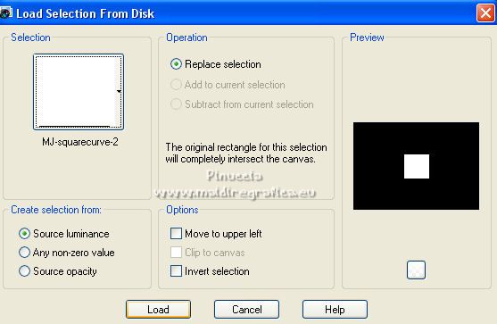 35. Selections>Load/Save Selection>Load Selection from Disk.