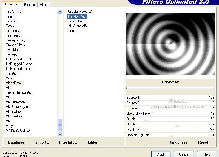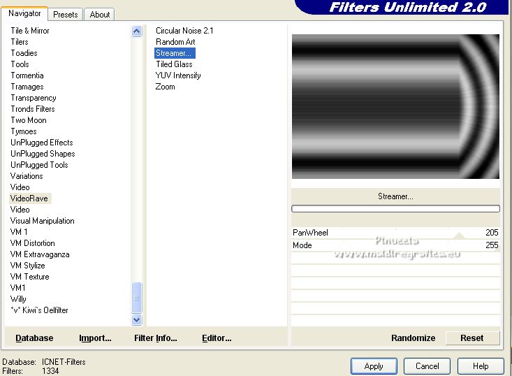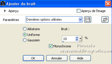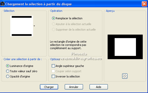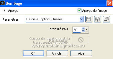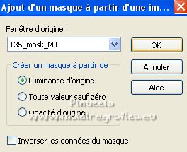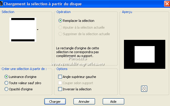Pour traduire ce tutoriel j'ai utilisé PSPX7, PSPX2 et PSPX3, mais il peut également être exécuté avec les autres versions. Suivant la version utilisée, vous pouvez obtenir des résultats différents. Depuis la version X4, la fonction Image>Miroir a été remplacée par Image>Renverser horizontalement, et Image>Renverser avec Image>Renverser verticalement . Dans les versions X5 et X6, les fonctions ont été améliorées par la mise à disposition du menu Objets. Avec la nouvelle version X7, nous avons encore Image>Miroir et Image>Renverser/Retourner, mais avec nouvelles différences. Voir les détails à ce sujet ici Certaines dénominations ont changées entre les versions de PSP. Les plus frequentes dénominations utilisées: ![]() English translation here Vos versions ici![]() Nécessaire pour réaliser ce tutoriel: Matériel ici Pour le tube merci Beatriz. Le reste du matériel est de Maria José. (ici les liens vers les sites des créateurs du matériel) Modules Externes: consulter, si nécessaire, ma section des filtres ici Filters Unlimited 2.0 ici Video Rave - Streamer, Random Art ici Graphics Plus - Vertical Mirror ici Mura's Seamless - Emboss at Alpha ici Filtres Mura Seamless, Graphics Plus et Video Rave peuvent être utilisés seuls ou importés dans Filters Unlimited. voir comment le faire ici). Si un filtre est fourni avec cette icône, ![]() en fonction des couleurs utilisées, vous pouvez changer le mode mélange et l'opacité des calques. Dans les plus récentes versions de PSP, vous ne trouvez pas le dégradé d'avant plan/arriére plan ou Corel_06_029. Vous pouvez utiliser le dégradé des versions antérieures. Ici le dossier Dégradés de CorelX. Placer les sélections dans le dossier Sélections. Ouvrir le masque dans PSP et le minimiser avec le reste du matériel. 1. Placer en avant plan la couleur #2a2a2a, et en arrière plan la couleur #9d9d9d. ![]() Préparer en avant plan un dégradé de premier plan/arrière plan, style Linéaire. ![]() Ouvrir une nouvelle image transparente 1000 x 700 pixels. Remplir l'image transparente du dégradé.2. Réglage>Ajouter/Supprimer du bruit>Ajouter du bruit. ![]() 3. Effets>Modules Externes>Filters Unlimited 2.0 - VideoRave - Random Art, par défaut. ![]() 4. Effets>Effets de réflexion>Miroir rotatif. ![]() 5. Effets>Modules Externes>Graphics Plus - Vertical Mirror. ![]() 6. Effets>Modules Externes>Filters Unlimited 2.0 - VideoRave - Streamer. ![]() 7. Effets>Effets de réflexion>Miroir rotatif, par défaut. ![]() 8. Sélections>Charger/Enregistrer une sélection>Charger à partir du disque. Chercher et charger la sélection streamer_MJ. ![]() 9. Sélections>Transformer la sélection en calque. Sélections>Inverser. Effets>Effets 3D>Ombre portée, couleur noire. ![]() 10. Effets>Effets de distorsion>Bombage - 3 fois ![]() Résultat ![]() Sélections>Désélectionner tout. 11. Image>Redimensionner, à 80%, redimensionner tous les calques décoché. 12. Sélections>Charger/Enregistrer une sélection>Charger à partir du disque. Chercher et charger la sélection streamer_1_MJ. ![]() 13. Calques>Nouveau calque raster. Ouvrir le misted du paysage. Image>Miroir. Édition>Copier. Revenir sur votre travail et Édition>Coller dans la sélection. Sélections>Inverser. 14. Effets>Effets de distorsion>Bombage - 1 fois. ![]() Sélections>Inverser. 15. Calques>Nouveau calque raster. Effets>Effets 3D>Découpe. ![]() Calques>Fusionner>Fusionner le calque de dessous. Sélections>Désélectionner tout. Réduire l'opacité de ce calque +/-85% (si nécessaire). 16. Ouvrir decostreamer et Édition>Copier. Revenir sur votre travail et Édition>Coller comme nouveau calque. Coloriser si nécessaire, en fonction de vos couleurs. Placer le calque en mode Écran, ou autre. 17. Calques>Nouveau calque raster. Placer en avant plan la couleur blanche ffffff. Remplir le calque avec la couleur blanche.18. Calques>Nouveau calque de masque>A partir d'une image. Ouvrir le menu deroulant sous la fenêtre d'origine et vous verrez la liste des images ouvertes. Sélectionner le masque 135_mask_MJ. ![]() Calques>Fusionner>Fusionner le groupe. 19. Effets>Modules Externes>Mura's Seamless - Emboss at Alpha, par défaut. ![]() Placer le calque en mode Lumière dure, ou autre. La tag et les calques - régler Mode mélange et opacité à votre goût. ![]() 20. Image>Ajouter des bordures, 1 pixel, symétrique, couleur foncée. Image>Ajouter des bordures, 1 pixel, symétrique, couleur claire. Image>Ajouter des bordures, 1 pixel, symétrique, couleur foncée. 21. Sélections>Sélectionner tout. Édition>Copier. 22. Image>Ajouter des bordures, 50 pixels, symétrique, couleur blanche. 23. Sélections>Inverser. Édition>Coller dans la sélection. 24. Effets>Effets de distorsion>Bombage. ![]() Édition>Répéter Bombage. 25. Réglage>Netteté>Davantage de netteté. Effets>Effets 3D>Ombre portée, couleur noire. ![]() Sélections>Désélectionner tout. 26. Ouvrir le tube de la femme et Édition>Copier. Revenir sur votre travail et Édition>Coller comme nouveau calque. Image>Miroir. Déplacer le tube à droite.Effets>Effets 3D>Ombre portée, à choix. 27. Signer votre travail sur un nouveau calque. Image>Ajouter des bordures, 1 pixel, symmetric, couleur foncée. 28. Image>Redimensionner, 1000 pixels de largeur, redimensionner tous les calques coché. Enregistrer en jpg. Pour le tube de cette version merci Nikita, le misted est à moi ![]() ![]() Si vous avez des problèmes, ou des doutes, ou vous trouvez un link modifié, ou seulement pour me dire que ce tutoriel vous a plu, vous pouvez m'écrire. |