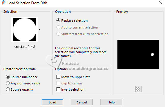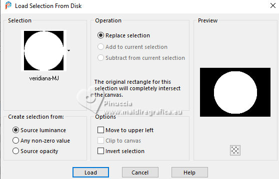 17. Selections>Load/Save Selection>Load Selection from Disk.