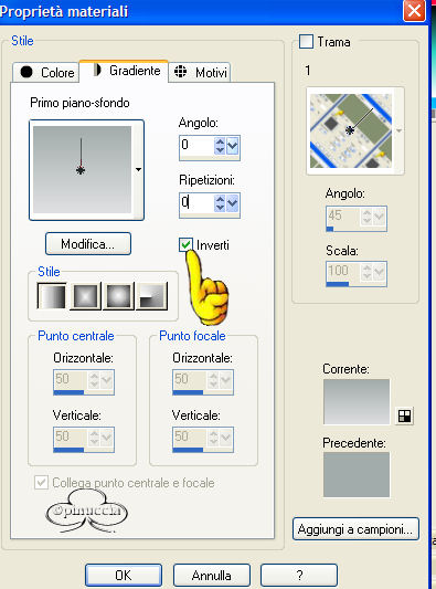 2. Setta il colore di primo piano #a2acab e come colore di sfondo #e0e0e1. Passiamo il colore di primo piano a gradiente, angolo 0,