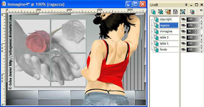 Torna al tuo lavoro e vai a Modifica>Incolla>Incolla come nuovo livello - che chiamerai "ragazza" e posizionalo adeguatamente (vedi risultato finale).