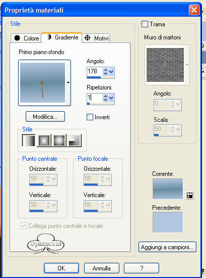 Con questi colori crea un gradiente di primo piano/sfondo, con i seguenti settaggi: