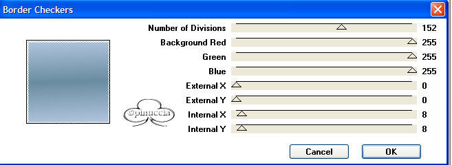 Effetti>Plugins>Alf's Border fx/Border Checkers, con gli stessi valori del passo precedente.
