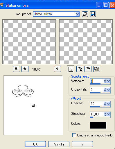 Effetti>Effetti 3D>Sfalsa ombra, con i settaggi precedenti.