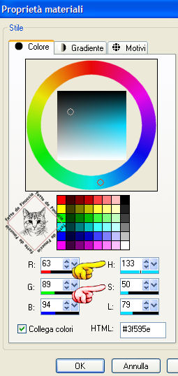 al colore che hai scelto (nel mio esempio h=133 e s=50). Prendi nota dei numeri: