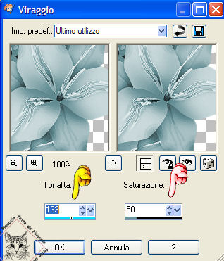 Regola>Saturazione e tonalità>Viraggio: e applica i valori che hai annotato prima