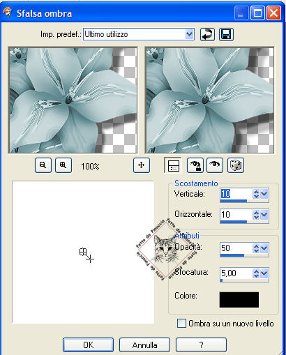 Effetti>Effetti 3d>Sfalsa ombra con i seguenti settaggi: