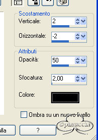 Effetti>Effetti 3D>Sfalsa ombra, con i seguenti settaggi.
