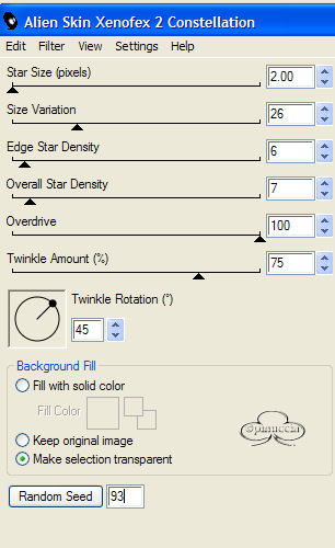 Effetti>Plugins>Alien Skin Xenofex 2/Constellation con i seguenti valori: