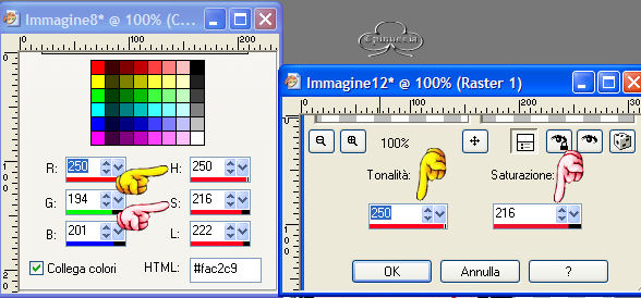 Saturazione e tonalità del colore che hai scelto e poi vai A