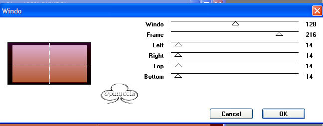 3. Posizionati sul livello "WINDO", riempilo con il gradiente e applica il filtro Mock/Windo con i seguenti settaggi: