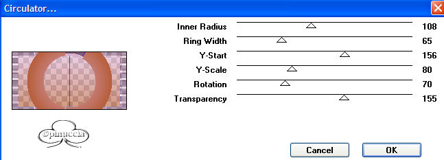Posizionati sulla copia (non sull'originale) e vai a Effetti>Plugins>Factory Gallery B>Circulator:
