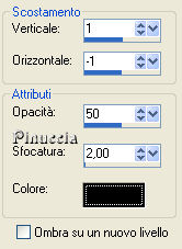 1. Apri l'immagine "logoamor" fornito con il tutorial. Effetti>Effetti 3D>Sfalsa ombra: ![]() Ripeti l'Effetto Sfalsa ombra. Selezione>Nessuna selezione. 3. Aggiungi un tube a scelta in un nuovo livello e applica lo stesso Effetto Sfalsa ombra. 4. Livelli>Unisci>Unisci visibile e salva in formato psp. Apri Animation Shop e apri il file che hai appena salvato. Mantieni il valore della velocità a 10. Modifica>Duplica e ripeti finchè non avrai ottenuto 15 fotogrammi. Clicca sul primo fotogramma per selezionarlo e vai a Modifica>Seleziona tutto. Apri l'animazione fornita con il tutorial: caja.mng: Clicca sul primo fotogramma per selezionarlo e vai a Modifica>Seleziona tutto e quindi Modifica>Copia. Torna all'immagine principale e vai a Modifica>Incolla>Incolla nel fotogramma selezionato. Posiziona l'animazione dove preferisci e quando hai trovato la posizione corretta rilascia il tasto del mouse. Salva in formato gif.
