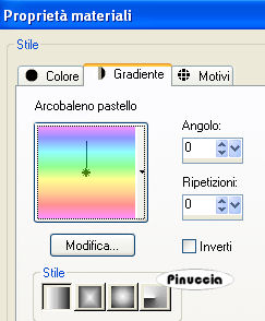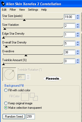 qui puoi trovare qualche risposta ai tuoi dubbi. Se l'argomento che ti interessa non è presente, ti prego di segnalarmelo. Questo tutorial è stato scritto con PSP X2, ma può essere realizzato con qualsiasi versione del programma. Per tradurlo ho usato PSP X. Occorrente: Un tube a scelta. Il resto del materiale qui Il tube che ho usato per il mio esempio è di Yoka. Filtro: Xenofex 2 qui Ti servirà anche Animation Shop qui 1. Apri il file "BASE" fornito con il tutorial. Vedrai che ha diversi livelli. Posizionati sul livello "FONDO", e riempilo con un colore a scelta.(nel mio caso ho usato il bianco). 2. Apri il tube che hai scelto e vai a Modifica>Copia. Torna al tuo lavoro. Posizionati sul livello superiore e vai a Modifica>Incolla come nuovo livello. Se necessario, ridimensiona il tube (Immagine>Ridimensiona...) e spostalo a sinistra.(vedi il mio esempio finale per regolarti). Effetti>Effetti 3D>Sfalsa ombra, con i seguenti settaggi: ![]() Rimani posizionati sul livello del tube. Selezione>Carica/Salva selezione>Carica selezione da canale alfa. La Seleccion 1 è già presente. Devi soltanto cliccare Carica. ![]() Selezione>inverti. Premi sulla tastiera il tasto CANC ![]() Rinomina questo livello TUBE. 3. Attiva il livello "UNO". Selezione>Carica/Salva selezione>Carica selezione da canale alfa. Apri il menu e selezione "Seleccion 2". ![]() Passa il colore di primo piano a Gradiente e seleziona un gradiente di vari colori (angolo 0, ripetizioni 0). Nel mio esempio ha usato Arcobaleno pastello: ![]() Riempi la selezione con questo gradiente.![]() Effetti>Plugins>Alien Skin - Xenofex 2 - Constellation: ![]() Selezione>inverti. Premi sulla tastiera il tasto CANC. selezione>Deseleziona. ![]() 4. Attiva il livello "DOS" e ripeti il passo precedente, soltanto, al momento di applicare il filtro, clicca una volta su Random Seed. 5. Attiva il livello "TRES" e ripeti il passo precedente e, al momento di applicare il filtro, clicca su Random Seed. Attiva il livello superiore e, in un nuovo livello, scrivi il testo che preferisci. Applica al testo lo stesso Effetto Sfalsa ombra, usato al passo 2. Rinomina questo livello TESTO. 7. Se il tuo tube ha un copyright, aggiungilo in un nuovo livello. 8. Attiva lo strumento Ritaglio ed elimina lo spazio bianco in eccesso.Avrai questo: ![]() Per creare l'animazione: Chiudi i livelli "DOS" e "TRES". ![]() Modifica>Copia Unione. Apri Animation Shop e vai a Modifica>Incolla>Incolla come nuova animazione. Torna in PSP. Chiudi il livello "UNO" e rendi nuovamente visibile il livello "DOS". ![]() Modifica>Copia Unione. Torna in Animation Shop e vai a Modifica>Incolla>Incolla dopo il fotogramma corrente. Di nuovo in PSP. Chiudi il livello "DOS" e rendi visibile il livello "TRES". ![]() Modifica>Copia Unione. Per finire, in Animation Shop: Modifica>Incolla>Incolla dopo il fotogramma corrente. Modifica>Seleziona tutto. Animazione>Proprietà fotogramma, e imposta la velocità a 15. Controlla il risultato cliccando su Visualizza e salva in formato gif.![]() Se hai problemi o dubbi, o trovi un link non funzionante, o anche soltanto per un saluto, scrivimi. 9 Aprile 2008 |