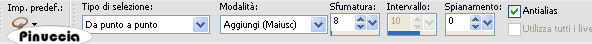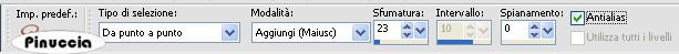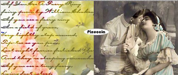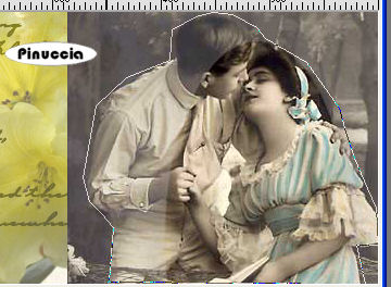 qui puoi trovare qualche risposta ai tuoi dubbi. Se l'argomento che ti interessa non è presente, ti prego di segnalarmelo. Questo tutorial è stato scritto con PSP X2, ma può essere realizzato con qualsiasi versione del programma. Occorrente: Un'immagine a scelta. Il resto del materiale qui La maschera è di Weescotslass Usa una foto a tua scelta. 1. Imposta il colore di primo piano con #474461. Apri una nuova immagine trasparente 600 x 250 pixels, e riempila con il colore di primo piano.2. Apri la trama fornita ("Textura") e vai a Modifica>Copia. Torna al tuo lavoro e vai a Modifica>Incolla come nuovo livello. Livelli>Duplica. Nella paletta dei livelli al livello della trama inferiore cambia la modalità di miscelatura in Differenza, e al livello della trama superiore cambia la modalità di miscelatura in Sovrapponi. ![]() Si utilizza una trama differente da quella fornita per il tutorial, sperimenta le modalità di miscelatura per trovare quella che più si adatta (Differenza/Sovrapponi>Moltiplica/Filtra...). 3. Apri il tube del fiore e vai a Modifica>Copia. Torna al tuo lavoro e vai a Modifica>Incolla come nuovo livello. Immagine>Ridimensiona, al 70%, tutti i livelli non selezionato. Nella paletta dei livelli abbassa l'opacità di questo livello al 65%. Sposta il tube adeguatamente.4. Assicurati di essere posizionato sul livello superiore e vai a Livelli>Nuovo livello raster. Attiva lo strumento Pennello ![]() cerca e seleziona un pennello di testo a tua scelta, e applicalo con il colore di primo piano (474461). Sposta il pennello a sinistra.Cambia la modalità di miscelatura di questo livello in Luminanza. 5. Apri la tua foto e vai a Modifica>Copia. Torna al tuo lavoro e vai a Modifica>Incolla come nuovo livello. Se necessario, Immagine>Ridimensiona. Posiziona la foto a destra.![]() Attiva lo strumento Selezione a mano libera con i seguenti settaggi:![]() Seleziona il contorno delle immagini. ![]() quando rilascerai il tasto del mouse, la selezione si allargherà per effetto della sfumatura. ![]() Selezione>Inverti. Premi sulla tastiera il tasto CANC ![]() ![]() 6. Assicurati di essere posizionato sul livello della tua foto. Livelli>Duplica. Nella paletta dei livelli abbassa l'opacità del livello inferiore della foto al 60%. Attiva il livello superiore della foto. Attiva lo strumento Selezione a mano libera con i seguenti settaggi:![]() seleziona la parte di foto che vuoi tenere in rilievo sul tuo lavoro (nel mio caso l'immagine della donna). ![]() Selezione>Inverti. Premi sulla tastiera il tasto CANC ![]() ![]() 7. Livelli>Nuovo livello raster. Imposta il colore di primo piano con #b18e43, e riempi il livello con questo colore.Selezione>Seleziona tutto. Selezione>Modifica>Contrai - 2 pixels. Premi sulla tastiera il tasto CANC. Selezione>Deseleziona. Aggiungi un testo adatto all'immagine che hai scelto e firma il tuo lavoro. Livelli>Unisci>Unisci tutto e salva in formato jpg. ![]() ![]() Se hai problemi o dubbi, o trovi un link non funzionante, o anche soltanto per un saluto, scrivimi. 27 Luglio 2008 |