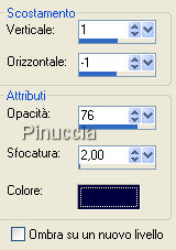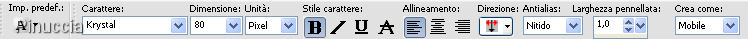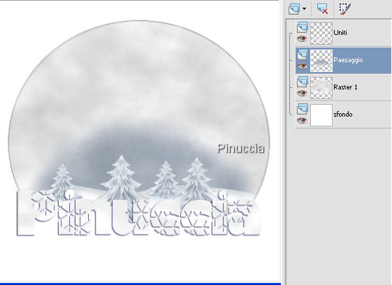 qui puoi trovare qualche risposta ai tuoi dubbi. Se l'argomento che ti interessa non è presente, ti prego di segnalarmelo. Questo tutorial è stato scritto con PSP X2, ma può essere realizzato con qualsiasi versione del programma. Per tradurlo, ho usato PSP X. Occorrente: Materiale qui (la trama è stata creata da Mari, non può essere usata come materiale di altri tutorial senza il consenso scritto dell'autrice) Filtro: Mura's Meister - Cloud qui Ti servirà anche Animation Shop qui 1. Apri tutto il materiale fornito con il tutorial (tranne le piccole gif che aprirai in Animation Shop), e minimizzalo nella tua area di lavoro. Apri una nuova immagine trasparente 400 x 400 pixels, e riempila con il colore che hai deciso di utilizzare come sfondo,(io ho scelto il bianco). Rinomina questo livello "SFONDO". 2. Livelli>Nuovo livello raster, e rinomina questo livello TESTO. Attiva lo strumento Testo ![]() ![]() Chiudi il colore di primo piano. Passa il colore di sfondo a Motivi e seleziona la trama fornita (angolo 0, scala 100). ![]() Scrivi il tuo nome. Effetti>Effetti 3D>Sfalsa ombra: ![]() Selezione>Deseleziona. 3. Livelli>Nuovo livello raster, e rinomina questo livello "CERCHIO". Imposta il colore di primo piano con la Trama e chiudi il colore di sfondo. sarà sufficiente cliccare sulla freccia tra le due palette. ![]() Attiva lo strumento Forme , ellisse, dimensione 2,e disegna un cerchio più o meno come nell'immagine, (nella schermata il segno scuro serve soltanto come riconoscimento della forma). ![]() Attiva lo strumento Selezione , rettangolo,e seleziona l'area indicata nella schermata. ![]() Premi sulla tastiera il tasto CANC ![]() Selezione>Deseleziona. Effetti>Effetti 3D>Sfalsa ombra, con i settaggi precedenti. Nella paletta dei livelli sposta il livello del cerchio sotto il livello del testo. ![]() Chiudi il livello di sfondo e posizionati su uno degli altri livelli. Livelli>Unisci>Unisci visibile. Riapri il livello dello sfondo. 4. Rimani posizionato sul livello uniti. Attiva lo strumento Bacchetta magica ![]() ![]() e clicca all'interno del cerchio per selezionarlo. ![]() Selezione>Modifica>Espandi, di 3 pixels. Livelli>Nuovo livello raster. Nella paletta dei livelli sposta questo livello sotto il livello uniti, e rinominalo FILTRO. Riempi il livello con il bianco.Effetti>Plugins>Mura's Meister - Cloud: ![]() Selezione>Deseleziona. 5. Attiva il tube del paesaggio (Snowtrees), fornito con il tutorial e vai a Modifica>Copia. Torna al tuo lavoro. Rimani posizionato sul livello del Filtro e vai a Modifica>Incolla come nuovo livello, e rinomina questo livello PAESAGGIO. Posiziona il paesaggio dentro il cerchio.![]() Selezione>Inverti. Premi sulla tastiera il tasto CANC ![]() Selezione>Deseleziona. 6. Attiva lo strumento Ritaglio ![]() ed elimina lo spazio superfluo. Avrai questo: ![]() Livelli>Unisci>Unisci visibile. Salva in formato psp. Per creare l'animazione copia l'immagine: Modifica>Copia. Apri Animation Shop e vai a Modifica>Incolla>Incolla come nuova animazione. ![]() Con il materiale troverai due piccole gif: una composta da due fotogrammi e una composta da quattro fotogrammi. Per aggiungere la gif, devi duplicare il tuo lavoro (Livelli>Duplica) con lo stesso numero di fotogrammi della gif che vuoi aggiungere. Due fotogrammi per la gif "22" e quattro fotogrammi per la gif "79". Unisci l'animazione e salva in formato gif. ![]() ![]() Se hai problemi o dubbi, o trovi un link non funzionante, o anche soltanto per un saluto, scrivimi. 29 Novembre 2007 |