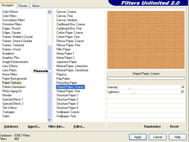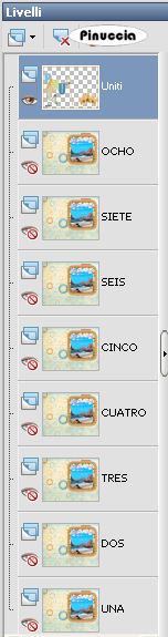 qui puoi trovare qualche risposta ai tuoi dubbi. Se l'argomento che ti interessa non è presente, ti prego di segnalarmelo. Questo tutorial è stato scritto con PSP X2, ma può essere realizzato con qualsiasi versione del programma. Per tradurlo ho usato PSP X. Occorrente: Base animata creata da Mari ed elementi scrap qui (gli elementi scrap sono di Kim B'S). Font a scelta. Filtri: Eye Candy 4000 qui Filters Unlimited qui Ti servirà anche Animation Shop qui 1. Apri il file "Animacion" fornito con il materiale. Vedrai che è formato da 8 livelli, con i quali avrai l'animazione. 2. Posizionati sul livello superiore e vai a Livelli>Nuovo livello raster. Attiva lo strumento Testo , con i seguenti settaggi:![]() Chiudi il colore di primo piano e imposta il colore di sfondo con un colore a tua scelta. Scrivi la prima lettera del tuo nome. Effetti>Plugins>Eye Candy 400 - Gradient Glow: prima imposta il colore bianco ![]() e poi i settaggi del filtro: ![]() Scegli un altro colore e applica il filtro una seconda volta. 3. Scrivi le altre lettere del tuo nome, ciascuna in un livello distinto, e applicando ogni volta il filtro Eye Candy 4000, come nel passo precedente. 4. Uno per uno, copia e incolla i tubes per decorare il tuo lavoro. Ridimensiona i tubes (Immagine>Ridimensiona...), e posizionali come preferisci,(vedi il risultato finale come riferimento). Ad ogni tube applica l'Effetto Sfalsa ombra. Effetti>Effetti 3D>Sfalsa ombra: ![]() 5. Assicurati di essere posizionato sul livello superiore. Livelli>Nuovo livello raster. Riempi il livello con il colore #dfa266.Effetti>Plugins>Filters Unlimited 2.0 - Paper Textures - ![]() Selezione>Seleziona tutto. Selezione>Modifica>Contrai - 5 pixels. Premi sulla tastiera il tasto CANC ![]() Selezione>Deseleziona. 6. Nella paletta dei livelli chiudi il livello "UNA". Livelli>Unisci>Unisci visibile. E avrai questo. ![]() Adesso dovrai unire i livelli per creare l'animazione. Lascia visibili i livelli Uniti e UNA e vai a Modifica>Copia Unione. Apri Animation Shop e vai a Modifica>Incolla>Incolla come nuova animazione. Torna in PSP. Chiudi il livello UNA, e rendi visibile il livello Dos. Modifica>Copia unione. Torna in Animation Shop e vai a Modifica>Incolla>Incolla dopo il fotogramma corrente. Di nuovo in PSP. Chiudi il livello dos e rendi visibile il livello tres. Modifica>Copia Unione. In Animation Shop: Modifica>Incolla>Incolla dopo il fotogramma corrente. E ripeti la stessa procedura con i livelli cuatro, cinco, seis, siete, ocho. Alla fine avrai la tua animazione composta da otto fotogrammi. Modifica>Seleziona tutto. Animazione>Proprietà fotogramma, e imposta la velocità a 20. ![]() Controlla il risultato cliccando su Visualizza , e salva in formato gif.![]() Se hai problemi o dubbi, o trovi un link non funzionante, o anche soltanto per un saluto, scrivimi. 30 Aprile 2008 |