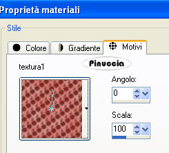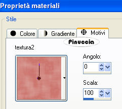 qui puoi trovare qualche risposta ai tuoi dubbi. Se l'argomento che ti interessa non è presente, ti prego di segnalarmelo. Questo tutorial è stato scritto con PSP X2, ma può essere realizzato con qualsiasi versione del programma. Per tradurlo ho usato PSP X. Occorrente: Elementi scrap creati da Mari qui Animazione creata da Mari qui (non puoi utilizzare questa animazione per un altro tutorial senza l'autorizzazione scritta dell'autrice). Stile di linea: country qui (scompatta il file nella cartella Stili di linea di PSP). Ti servirà anche Animation Shop qui 1. Apri una nuova immagine trasparente 500 x 500 pixels, e riempila con un colore a scelta,(per il mio esempio ho usato il bianco). 2. Livelli>Nuovo livello raster. Imposta il colore di primo piano con #d38781, Apri Textura2, fornita con il materiale, e minimizzala nella tua area di lavoro. Passa il colore di sfondo a Motivi e seleziona la trama con i seguenti settaggi: ![]() Attiva lo strumento Forme , e traccia un rettangolo, con i seguenti settaggi,stile di linea country: ![]() Immagine>Ruota per gradi - 25 gradi a sinistra: ![]() 3. Livelli>Nuovo livello raster. Imposta il colore di primo piano con #782d27. Apri Textura 1 fornita con il materiale, e minimizzala nella tua area di lavoro. Imposta il colore di sfondo con questa trama: ![]() Imposta lo strumento Forme, con i seguenti settaggi. ![]() e disegna un cerchio sopra il rettangolo. ![]() 4. Apri il tube Cinta e vai a Modifica>Copia. Torna al tuo lavoro e vai a Modifica>Incolla come nuovo livello. Immagine>Ridimensiona, al 70%, tutti i livelli non selezionato. Posiziona la cintura come preferisci,o guarda il mio esempio come riferimento. 5. Apri il tube "libreta" e vai a Modifica>Copia. Torna al tuo lavoro e vai a Modifica>Incolla come nuovo livello. Immagine>Ridimensiona all'80%, tutti i livelli non selezionato. 6. Apri "lazo 11", e vai a Modifica>Copia. Torna al tuo lavoro e vai a Modifica>Incolla come nuovo livello. Immagine>Ridimensiona, al 50%, tutti i livelli non selezionato. Regola>Messa a fuoco>Metti a fuoco. 7. Apri "lapiz", e vai a Modifica>Copia. Torna al tuo lavoro e vai a Modifica>Incolla come nuovo livello. Immagine>Ridimensiona, al 50%, tutti i livelli non selezionato. Immagine>Ruota per gradi - 25 gradi a destra. ![]() Alla fine avrai qualcosa di simile a questo: ![]() Aggiungi, se vuoi, altri piccoli tubes per adornare il tuo lavoro, e sistemali adeguatamente.Non dimenticare di aggiungere la tua firma. 8. Quando tutto è a posto: Livelli>Unisci>Unisci visibile. Modifica>Copia. 9. Apri Animation Shop e vai a Modifica>Incolla>Incolla come nuova animazione. Modifica>Duplica, e ripeti finchè non avrai 25 fotogrammi. Apri l'animazione fornita "hoja", anche questa composta da 25 fotogrammi. Clicca sul primo fotogramma per selezionarlo e vai a Modifica>Seleziona tutto (oppure, sulla tastiera Ctrl+A). Clicca sul primo fotogramma per selezionarlo e vai a Modifica>Seleziona tutto (ctrl+A), e quindi Modifica>Copia (oppure, sulla tastiera Ctrl+C). Torna al tuo lavoro e vai a Modifica>Incolla>Incolla nel fotogramma selezionato (oppure sulla tastiera ctrl+E). Posiziona la carta e, quando sei certo della posizione corretta, rilascia il tasto del mouse. Apri il file "Texto1" .Modifica>Duplica e ripeti fino ad ottenere 25 fotogrammi. Modifica>Seleziona e poi Modifica>Copia. Torna al tuo lavoro e posiziona il testo come nel mio esempio. Controlla il risultato cliccando su Visualizza e salva in formato gif. .![]() Se hai problemi o dubbi, o trovi un link non funzionante, o anche soltanto per un saluto, scrivimi. 30 Aprile 2008 |