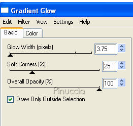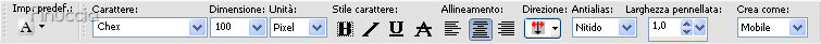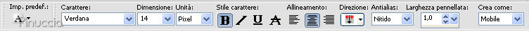 qui puoi trovare qualche risposta ai tuoi dubbi. Se l'argomento che ti interessa non è presente, ti prego di segnalarmelo. Questo tutorial è stato scritto con PSP X2, ma può essere realizzato con qualsiasi versione del programma. Per tradurlo ho usato PSP X. Materiale qui Filtro Eye Candy 4000 qui (l'animazione del paesaggio è una creazione di Mari, l'autrice del tutorial. Non può essere utilizzata come materiale per un altro tutorial). 1. Apri il file "TRABAJO" fornito con il materiale. Vedrai che è composto da due livelli; il livello PAISAJE, che serve soltanto come orientamento per posizionare il resto del materiale, e il livello CIRCULO, che serve per posizionare il testo in forma circolare. 2. Attiva il livello CIRCULO. Chiudi il colore di primo piano e imposta il colore di sfondo con il nero. Attiva lo strumento Testo , con i seguenti settaggi:![]() e passa il mouse sopra il cerchio: quando vedrai la A con la sottolineatura rotonda clicca con il tasto sinistro del mouse per far apparire la finestra del testo. ![]() Scrivi una frase a tua scelta. Selezione>Deseleziona. Rimanendo sul livello della frase che hai scritto vai a Effetti>Plugins>Eye Candy 4000 - Gradient Glow: ![]() ![]() Nella paletta dei livelli clicca con il tasto destro del mouse sul livello CIRCULO ed elimina il livello. In questo modo avrai il testo senza il cerchio che ti è servito da guida. 3. Apri il tube della ragazza e vai a Modifica>Copia. Nella paletta dei livelli posizionati sul livello superiore e vai a Modifica>Incolla come nuovo livello. Posiziona il tube come nell'esempio finale.4. Apri il tube dei fiori e vai a Modifica>Copia. Torna al tuo lavoro e vai a Modifica>Incolla come nuovo livello. Posiziona il tube accanto alla ragazza (vedi l'esempio finale).5. Livelli>Nuovo livello raster. Imposta il colore di primo piano con il nero e il colore di sfondo con #a47649. Attiva lo strumento Testo , con i seguenti settaggi.![]() Scrivi il tuo nome e posizionalo. Effetti>Effetti 3D>Sfalsa ombra, con i seguenti settaggi: ![]() Selezione>Nessuna selezione. 6. Nella paletta dei livelli elimina il livello PAISAJE, che non ti serve più. Livelli>Unisci>Unisci visibile. Salva in formato psp.image. 7. Apri Animation Shop. File>Nuovo e apri una nuova immagine 550 x 550 pixels, con un colore a tua scelta. Io ho scelto il bianco. ![]() Modifica>Duplica e ripeti, finchè non avrai un totale di 6 fotogrammi. Modifica>Seleziona tutto. Animazione>Proprietà fotogramma, e imposta la velocità a 20. ![]() Attiva l'animazione del paesaggio fornita con il tutorial. Clicca sul primo fotogramma per selezionarlo e vai a Modifica>Seleziona tutto e poi Modifica>Copia. Torna al tuo sfondo bianco (che è già selezionato) e vai a Modifica>Incolla>Incolla nel fotogramma selezionato. Posiziona il paesaggio al centro e dovresti avere qualcosa di simile a questo. ![]() 8. Apri adesso in Animation Shop l'immagine che hai salvato in formato psp. vai ad Animazione>Proprietà fotogramma, e imposta la velocità a 20. Modifica>Duplica e ripeti finchè non avrai un totale di 6 fotogrammi. Clicca sul primo fotogramma per selezionarlo e vai a Modifica>Seleziona tutto e poi Modifica>Copia. Torna al tuo lavoro (che è ancora selezionato) e vai a Modifica>Incolla>Incolla nel fotogramma selezionato. Ritaglia lo spazio in eccesso e salva in formato gif. ![]() Se hai problemi o dubbi, o trovi un link non funzionante, o anche soltanto per un saluto, scrivimi. 17 Ottobre 2007 |