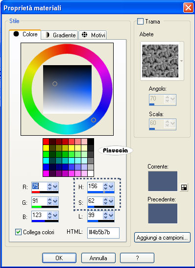 Nel mio esempio, ho utilizzato un colore azzurro i cui valori sono quelli indicati nella schermata sotto: