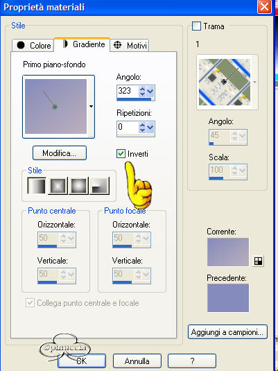 Selezione>Inverti e riempi la tela con lo stesso gradiente (ti sembrerà che non succeda niente, non preoccuparti e vai avanti).