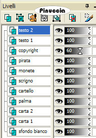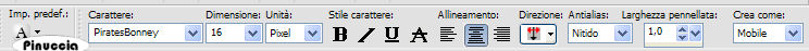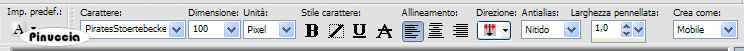 qui puoi trovare qualche risposta ai tuoi dubbi. Se l'argomento che ti interessa non è presente, ti prego di segnalarmelo. Questo tutorial è stato scritto con PSP 9, ma può essere realizzato con qualsiasi versione del programma. Occorrente: Le trame, le carte e gli ornamenti puoi trovarli qui: http://www.montispixelplayground.com/index2.html - Il blog è chiuso (clicca sul pannello a sinistra su Scrap Kits: la colonna centrale cambierà e appariranno i termini d'uso del sito; in fondo allo scritto clicca sull'orsetto e scarica "Monti's a Pirate's Life for me"). Tube, fonts e animazioni qui Ti servirà anche Animation Shop qui "Arial" size="4"> 1. Apri una nuova immagine trasparente 400 x 400 pixels, e riempila con il colore bianco.Rinomina questo livello "Sfondo". 2. Scegli la trama "Monti-PL-Word Paper". Immagine>Ridimensiona, al 50%. Modifica>Copia. Torna al tuo lavoro e vai a Modifica>Incolla>Incolla come nuovo livello. Rinomina questo livello "pirata 1". 3. Scegli la trama "Monti-PL-Wood Paper". Immagine>Ridimensiona, al 45%. Immagine>Aggiungi bordatura, 2 pixels, simmetriche, con il colore #5d3f27. ![]() Modifica>Copia. Torna al tuo lavoro e vai a Modifica>Incolla>Incolla come nuovo livello. Effetti>Effetti 3D>Sfalsa ombra: ![]() Rinomina questo livello "pirata 2". 4. Apri il tube della palma. Immagine>Ridimensiona, al 57%. Modifica>Copia. Torna al tuo lavoro e vai a Modifica>Incolla>Incolla come nuovo livello. Effetti>Effetti 3D>Sfalsa ombra, con i settaggi precedenti. Rinomina questo livello "Palma". 5. Apri il tube del cartello. Immagine>Ridimensiona, al 30%. Modifica>Copia. Torna al tuo lavoro e vai a Modifica>Incolla>Incolla come nuovo livello. Effetti>Effetti 3D>sfalsa ombra, con i settaggi precedenti. Rinomina questo livello "Cartello". 6. Apri il tube dello Scrigno. Immagine>Ridimensiona, al 40%. Modifica>Copia. Torna al tuo lavoro e vai a Modifica>Incolla>Incolla come nuovo livello. Rinomina questo livello "Scrigno". 7. Apri il tube con le monete. Immagine>Ridimensiona, al 30%. Modifica>Copia. Torna al tuo lavoro e vai a Modifica>Incolla>Incolla come nuovo livello. Rinomina questo livello "Monete". 8. Apri il tube del pirata che hai scelto, e vai a Modifica>Copia. Torna al tuo lavoro e vai a Modifica>Incolla>Incolla come nuovo livello. Eventualmente ridimensionalo. Se hai utilizzato il mio Immagine>Ridimensiona, al 53%. Rinomina questo livello "Pirata". 9. Aggiungi il copyright in un nuovo livello. Rinomina questo livello "Copyright". 10. Livelli>Nuovo livello raster, e rinomina il livello "Testo 1". Attiva lo strumento Testo con i seguenti settaggi (utilizzando le lettere minuscole).![]() Imposta il colore di primo piano con #3f0b0d, e il colore di sfondo con #dcc399. Scrivi il tuo nome e posizionalo. Effetti>Effetti 3D>Sfalsa ombra, con i settaggi precedenti. 11. Livelli>Nuovo livello raster, e rinomina questo livello "Testo 2". Chiudi il colore di primo piano e imposta il colore di sfondo con #3f0b0d. Attiva lo strumento Testo con i seguenti settaggi:![]() Scrivi "Tempo di avventure". Avrai questo: ![]() ![]() 12. Livelli>Unisci>Unisci visibile e salva in formato psp. Apri l'immagine in Animation Shop. Animazione>Proprietà fotogramma, e imposta la velocità a 14. ![]() Con il materiale ti sono state fornite due animazioni. Controlla il numero dei fotogrammi dell'animazione che hai deciso di usare e duplica i fotogrammi del tuo lavoro finchè non avrai lo stesso numero di fotogrammi. Unisci le due animazioni e salva in formato gif. ![]() ![]() Se hai problemi o dubbi, o trovi un link non funzionante, o anche soltanto per un saluto, scrivimi. 30 Luglio 2007 |