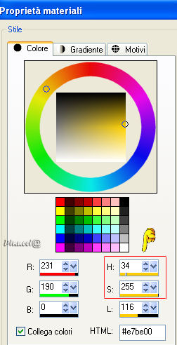 Del colore scelto prendi nota dei valori di Tonalità e saturazione (nel mio caso: 34 e 255).