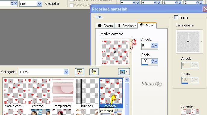 Nella paletta dei colori, su Motivi, cerca l'immagine CUORE 2 che hai minimizzato all'inizio.
