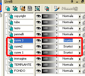Posizionati sul livello IMMAGINE e aggiungi tre nuovi livelli, chiamandoli rispettivamente cuore 1, cuore 2, e cuore 3: