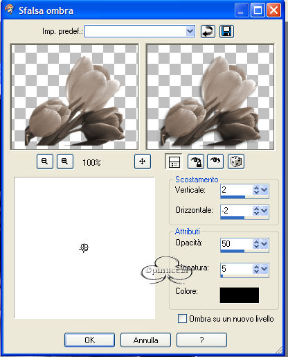 Effetti>Effetti 3D>Sfalsa ombra, con gli stessi settaggi del passo 4.