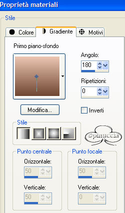 Cambia il colore di primo piano in gradiente, angolo 180, ripetizioni 0.