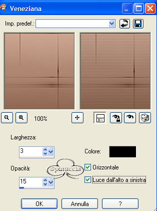 Selezione>Effetti di trama>Veneziana, con gli stessi settaggi del passo 2.
