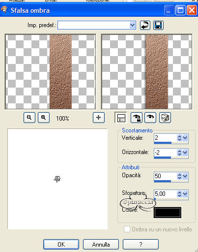 Effetti>Effetti 3D>Sfalsa ombra, con i settaggi precedenti.