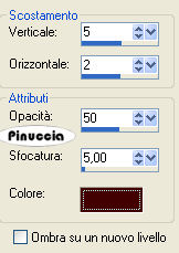 Effetti>Effetti 3D>Sfalsa ombra, con i seguenti settaggi: