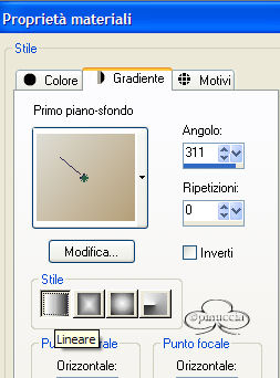 Riattiva il colore di primo piano e passalo a gradiente, con i seguenti settaggi: