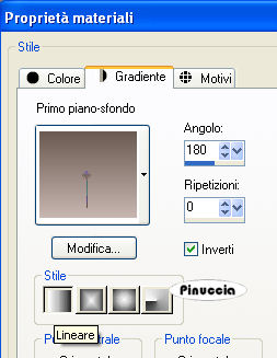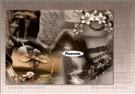 qui puoi trovare qualche risposta ai tuoi dubbi. Se l'argomento che ti interessa non è presente, ti prego di segnalarmelo. Questo tutorial è stato realizzato con PSP 9, ma può essere eseguito anche con le altre versioni di PSP. Occorrente: Materiale qui Apri una nuova immagine trasparente 650 x 450 pixels. Imposta il colore di primo piano con #c8b7b0, e il colore di sfondo con #6b5a52. Passa il colore di primo piano a Gradiente di primo piano/sfondo, con i seguenti settaggi: ![]() Riempi l'immagine trasparente con questo gradiente.Apri il tube SS_1504_Misted e vai a Modifica>Copia. Torna al tuo lavoro e vai a Modifica>Incolla>Incolla come nuovo livello. Posiziona il tube a sinistra.Livelli>Duplica. Immagine>Rifletti. Dovresti avere questo: ![]() Apri il tube BuroActuelSyC, e vai a Modifica>Copia. Torna al tuo lavoro e vai a Modifica>Incolla>Incolla come nuovo livello. Sposta questo tube a destra.Livelli>Disponi>Sposta giù. Cambia la modalità di miscelatura di questo livello in Luminanza (Esistente). Apri il tube PatryMistic_06_elegant_03, e vai a Modifica>Copia. Torna al tuo lavoro e vai a Modifica>Incolla>Incolla come nuovo livello. Posizionalo come nell'esempio.![]() Cambia la modalità di miscelatura di questo livello in Luminanza (esistente). Apri il tube KaraT3690, e vai a Modifica>Copia. Torna al tuo lavoro e vai a Modifica>Incolla>Incolla come nuovo livello. Sposta questo tube in basso a sinistra.Apri il tube Mascked_viky, e vai a Modifica>Copia. Torna al tuo lavoro e vai a Modifica>Incolla>Incolla come nuovo livello. Sposta questo tube a destra.Cambia la modalità di miscelatura di questo livello in Luminanza (esistente). Apri il tube Mist_Amaranth_011_Rosy07, e vai a Modifica>Copia. Torna al tuo lavoro e vai a Modifica>Incolla>Incolla come nuovo livello. Sposta questo tube in alto a destra,e cambia la modalità di miscelatura in Luminanza (esistente). Apri il tube mds2276getride030207, e vai a Modifica>Copia. Torna al tuo lavoro e vai a Modifica>Incolla>Incolla come nuovo livello. Sposta questo tube in alto a sinistra.Dovresti avere questo: ![]() Livelli>Unisci>Unisci visibile. Immagine>Ridimensiona, all'80%, tutti i livelli non selezionato. Livelli>Nuovo livello raster. Riempi questo livello con il gradiente,e applica una trama a tua scelta. Livelli>Nuovo livello raster. Attiva lo strumento Pennello ,e riempi il livello con pennelli a tua scelta. ![]() Chiudi il livello inferiore (uniti) e unisci il livello del gradiente e dei pennelli: Livelli>Unisci>Unisci visibile. Livelli>Disponi>Sposta giù. Apri e attiva il livello del lavoro e spostalo a sinistra.Effetti>Effetti 3D>Sfalsa ombra, con i seguenti settaggi: ![]() ![]() Apri il tube Pit Lace 67, che è composto da vari livelli. Attiva il livello dell'angolo e vai a Modifica>Copia. Torna al tuo lavoro e vai a Modifica>Incolla>Incolla come nuovo livello. Immagine>Ridimensiona, al 75%, tutti i livelli non selezionato, 2 volte. Effetti>Effetti di bordo>Aumenta. Effetti>Effetti 3D>Sfalsa ombra, con i settaggi precedenti. Sposta questo tube nell'angolo in alto a sinistra.Livelli>Duplica. Immagine>Rifletti. Apri il tube Defy-tubed-byGiny060406, e vai a Modifica>Copia. Torna al tuo lavoro e vai a Modifica>Incolla>Incolla come nuovo livello. Immagine>Ridimensiona, al 75%, tutti i livelli non selezionato. Sposta questo tube a destra.Apri nuovamente il tube Pit Lace 67 e posizionati sul livello Raster 3. Modifica>Copia. Torna al tuo lavoro e vai a Modifica>Incolla>Incolla come nuovo livello. Spostalo in basso a sinistra.Livelli>Nuovo livello raster. Aggiungi il tuo nome e/o il tuo watermark. Livelli>Unisci>Unisci tutto. Immagine>Aggiungi bordatura, 2 pixels, simmetriche, con un colore scuro. Salva in formato jpg. ![]() Se hai problemi o dubbi, o trovi un link non funzionante, o anche soltanto per un saluto, scrivimi. 21 Agosto 2007 |