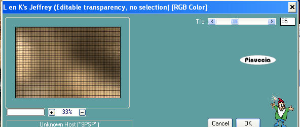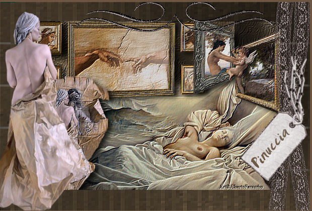 qui puoi trovare qualche risposta ai tuoi dubbi. Se l'argomento che ti interessa non è presente, ti prego di segnalarmelo. Questo tutorial è stato creato con PSP 9, ma può essere eseguito anche con le altre versioni di PSP. Occorrente: Materiale qui Filtri: FM Tile Tools qui Scribe qui L & K Site of wonders - Jeffrey qui Apri una nuova immagine trasparente 620 x 420 pixels. Selezione>Seleziona tutto. Apri "Fondo marron", e vai a Modifica>Copia. non chiuderlo, perchè ti servirà ancora. Torna al tuo lavoro e vai a Modifica>Incolla>Incolla nella selezione. Selezione>Nessuna selezione. Effetti>Plugins>FM Tile Tools - Blend Emboss, con i settaggi standard, 2 volte. ![]() Apri il tube "Swanja_AC_art_Alberto_Pancorbo, e vai a Modifica>Copia. Torna al tuo lavoro e vai a Modifica>Incolla>Incolla come nuovo livello. Spostalo in basso a destra.Effetti>Plugins>FM Tile Tools - Blend Emboss, con i settaggi standard, 2 volte. Apri il tube Pictures-for-wall-piw-718, e vai a Modifica>Copia. Torna al tuo lavoro e vai a Modifica>Incolla>Incolla come nuovo livello. Spostalo in alto a sinistra.Effetti>Plugins>FM Tile Tools - Blend Emboss, con i settaggi standard, 2 volte. Effetti>Effetti 3D>Sfalsa ombra, con i seguenti settaggi: ![]() Apri il tube hmo-amors-mothers, e vai a Modifica>copia. Torna al tuo lavoro e vai a Modifica>Incolla>Incolla come nuovo livello. Immagine>Ridimensiona, al 50%, tutti i livelli non selezionato. Posiziona il tube in alto a destra.Effetti>Plugins>FM Tile Tools - Blend Emboss, con i settaggi standard, 2 volte. Effetti>Effetti 3D>Sfalsa ombra, con i settaggi precedenti. Apri il tube MTM_Lady_154_esquisencomplice, e vai a Modifica>Copia. Torna al tuo lavoro e vai a Modifica>Incolla>Incolla come nuovo livello. Immagine>Ridimensiona, al 60%, tutti i livelli non selezionato. Sposta il tube in basso a sinistra.Effetti>Plugins>FM Tile Tools - Blend Emboss, con i settaggi standard, 2 volte. Effetti>Effetti 3D>Sfalsa ombra, con i settaggi precedenti. Livelli>Unisci>Unisci visibile. ![]() Immagine>Ridimensiona, all'80%, tutti i livelli non selezionato. Livelli>Nuovo livello raster. Livelli>Disponi>Sposta giù. Attiva nuovamente Fondo marron e vai a Modifica>Copia. Torna al tuo lavoro e vai a Modifica>Incolla>Incolla nella selezione. Selezione>Deseleziona. Regola>Sfocatura>Sfocatura gaussiana, raggio 15: ![]() Effetti>Plugins>Scribe - Partical, con i settaggi standard. ![]() Effetti>Plugins>L&K Jeffrey: ![]() dopo l'applicazione del filtro, mi è rimasto un piccolo rettangolo rosso, se è successa anche a te la stessa cosa, non preoccuparti, vedremo più avanti come farlo sparire. Effetti>Plugins>FM Tile Tools - Blend Emboss, con i settaggi standard. Livelli>Unisci>Unisci visibile. Apri il tube Goldsilvbows-bderksen. Attiva lo strumento Selezione a mano libera , da punto a punto,e seleziona uno dei due nastri. Modifica>Copia. Torna al tuo lavoro e vai a Modifica>Incolla>Incolla come nuovo livello. Immagine>Ridimensiona, al 25%, tutti i livelli non selezionato. Immagine>Ruota>Ruota per gradi, 90 gradi a sinistra. ![]() Regola>Saturazione e tonalità>Viraggio: ![]() Sposta il nastro a destra.Livelli>Duplica. Immagine>Rifletti. Sistema i due nastri, come nel mio esempio.Apri il tube Ap_kit_verde_tag12 e vai a Modifica>copia. Torna al tuo lavoro e vai a Modifica>Incolla>Incolla come nuovo livello. Immagine>Ridimensiona, al 40%, tutti i livelli non selezionato. Immagine>Ruota>ruota per gradi, 40 gradi a destra. Regola>Saturazione e tonalità>Viraggio, con i settaggi precedenti. Sposta la targhetta a destra.se vuoi seguire il mio esempio per la variante dei cordini della targhetta: attiva lo strumento Selezione a mano libera da punto a punto,e seleziona i cordini: ![]() Modifica>Taglia. Modifica>Incolla>Incolla come nuovo livello. Immagine>Rifletti. Attiva lo strumento Deformazione , o puntatore se stai usando PSP X,e ruota i cordini per sistemarli orizzontalmente alla targhetta. ![]() Apri il tube SFK_cornet set e vai a Modifica>Copia. Torna al tuo lavoro e vai a Modifica>Incolla>Incolla come nuovo livello. Immagine>Ruota>Ruota per gradi, 90 gradi a sinistra. ![]() Posiziona il tube in alto, come nel mio esempio.Apri il tube Mtm_Lady_165, e vai a Modifica>copia. Torna al tuo lavoro e vai a Modifica>Incolla>Incolla come nuovo livello. Immagine>Ridimensiona, all'80%, tutti i livelli non selezionato. Sposta il tube a sinistra.Aggiungi il tuo nome in un nuovo livello. Immagine>Aggiungi bordatura, 3 pixels, simmetriche, con un colore scuro. Se, come è successo a me, dopo aver applicato il filtro L&K, ti è rimasto quel piccolo rettangolo rosso nell'angolo in alto a sinistra, ![]() e vuoi seguire il mio esempio, invece di aggiungere il bordo fai così: Selezione>Seleziona tutto. Selezione>Modifica>Contrai, di 4 pixels. Selezione>inverti. Riempi con un colore scuro.Selezione>Nessuna selezione. Salva in formato jpg. ![]() Se hai problemi o dubbi, o trovi un link non funzionante, o anche soltanto per un saluto, scrivimi. 7 Gennaio 2008 |