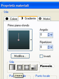 qui puoi trovare qualche risposta ai tuoi dubbi. Se l'argomento che ti interessa non è presente, ti prego di segnalarmelo. Questo tutorial è stato creato con PSP 9, ma può essere eseguito anche con le altre versioni di PSP. Occorrente: Materiale qui Filtri: FM Tile Tools qui Apri tutto il materiale in PSP. Apri una nuova immagine trasparente 600 x 450 pixels. Selezione>Seleziona tutto. Attiva l'immagine di sfondo "fondoplata" e vai a Modifica>Copia. Torna al tuo lavoro e vai a Modifica>Incolla>Incolla nella selezione. Mantieni selezionato. Livelli>Nuovo livello raster. Attiva il tube Castle_Transilvania, e vai a Modifica>Copia. Torna al tuo lavoro e vai a Modifica>Incolla>Incolla nella selezione. Selezione>Nessuna selezione. Effetti>Plugins>FM Tile Tools - Blend Emboss, con i settaggi standard, 3 volte. ![]() Attiva il tube E&E-S-01174r, e vai a Modifica>Copia. Torna al tuo lavoro e vai a Modifica>Incolla>Incolla come nuovo livello. Posiziona questo tube in alto a sinistra.Cambia la modalità miscelatura di questo livello in Luminanza (Esistente). Effetti>Plugins>FM Tile Tools - Blend Emboss, con i settaggi standard, 2 volte. ![]() Attiva il tube Isharimal_justmarried, e vai a Modifica>Copia. Torna al tuo lavoro e vai a Modifica>Incolla>Incolla come nuovo livello. Sposta il tube a destra.Cambia la modalità di miscelatura di questo livello in Luminanza (esistente). Attiva il tube JBL_080896_Tomcruise, e vai a Modifica>Copia. Torna al tuo lavoro e vai a Modifica>Incolla>Incolla come nuovo livello. Spostalo a sinistra.![]() Attiva il tube E&E-S-01180, e vai a Modifica>Copia. Torna al tuo lavoro e vai a Modifica>Incolla>Incolla come nuovo livello. Immagine>Ruota>Ruota per gradi, 90 gradi a destra. ![]() Spostalo in basso a destra.Cambia la modalità di miscelatura di questo livello in Luminanza (esistente). Effetti>Plugins>FM Tile Tools - Blend Emboss, con i settaggi standard, 2 volte. Livelli>Unisci>Unisci visibile. ![]() Immagine>Ridimensiona, al 90%, tutti i livelli non selezionato. Livelli>Duplica. Immagine>Ridimensiona, al 90%, tutti i livelli non selezionato. Livelli>Duplica. Immagine>Ridimensiona, al 90%, tutti i livelli non selezionato. Attiva il livello inferiore. Immagine>Ruota>Ruota per gradi, 10 gradi a destra. ![]() Attiva il livello centrale. Immagine>Ruota>Ruota per gradi, 10 gradi a sinistra. ![]() Attiva nuovamente il livello inferiore. Immagine>Ridimensiona, al 90%, tutti i livelli non selezionato. Attiva il livello centrale. Immagine>Ridimensiona, al 90%, tutti i livelli non selezionato. Attiva il livello superiore. Immagine>Ridimensiona, al 90%, tutti i livelli non selezionato. ![]() Livelli>Nuovo livello raster. Imposta il colore di primo piano con #1e2829, e il colore di sfondo con #39616d. Passa il colore di primo piano a Gradiente, con i seguenti settaggi: ![]() Riempi il livello con questo colore.Effetti>Plugins>Filters Unlimited 2.0 - Lens effect - Chopper, intensity 226: ![]() Livelli>Disponi>Porta sotto. Attiva il tube V-swirlsOfpearlscorner, e vai a Modifica>Copia. Torna al tuo lavoro e vai a Modifica>Incolla>Incolla come nuovo livello. Immagine>Ridimensiona, al 50%. Sposta il tube a sinistra.Effetti>Effetti 3D>Sfalsa ombra, con i seguenti settaggi: ![]() Cambia la modalità di miscelatura di questo livello in Moltiplica, e abbassa l'opacità al 50%. Livelli>Duplica. Immagine>Rifletti. Immagine>Capovolgi. ![]() Posizionati sul livello superiore. Attiva il tube Patry Tubes-06-elements-12. Con lo strumento Selezione a mano libera da punto a punto,seleziona uno dei nastri; non importa il colore, lo cambierai dopo. ![]() Modifica>Copia. Torna al tuo lavoro e vai a Modifica>Incolla>Incolla come nuovo livello. Sposta questo tube a destra.Regola>Saturazione e tonalità>Viraggio: ![]() Effetti>Effetti 3D>Sfalsa ombra, con i settaggi precedenti. Attiva il tube "staple x", e vai a Modifica>Copia. Torna al tuo lavoro e vai a Modifica>Incolla>Incolla come nuovo livello. Spostalo nell'angolo in basso a sinistra.Regola>Saturazione e tonalità>Viraggio, con i settaggi precedenti. Effetti>Effetti 3D>Sfalsa ombra, con i settaggi precedenti. Attiva il tube Patrytubes-Scrapbook10. Posizionati sul livello Layer 3 (i cuori). Con lo strumento Selezione seleziona uno dei cuori.Eventualmente nascondi gli altri livelli per vedere meglio quello che ti interessa. ![]() Modifica>Copia. Torna al tuo lavoro e vai a Modifica>Incolla>Incolla come nuovo livello. Spostalo in alto a destra, sopra il nastro, vedi l'esempio finale.Effetti>Effetti 3D>Sfalsa ombra, con i settaggi precedenti. Attiva il tube TWYL-SmallDiamond, e vai a Modifica>Copia. Torna al tuo lavoro e vai a Modifica>Incolla>Incolla come nuovo livello. Spostalo a destra su un lato del nastro, vedi l'esempio finale.Effetti>Effetti 3D>Sfalsa ombra, con i settaggi precedenti. Livelli>Duplica. Posiziona il duplicato sull'altro lato del nastro.![]() Se vuoi, duplica ancora il livello e posiziona il diamantino nell'angolo in basso a sinistra, vedi il mio esempio. Attiva il tube "ribon ties 2", e vai a Modifica>Copia. Torna al tuo lavoro e vai a Modifica>Incolla>Incolla come nuovo livello. Posizionalo come nel mio esempio.Effetti>Effetti 3D>Sfalsa ombra, con i settaggi precedenti. Attiva il tube Deko. Con lo strumento Selezione , seleziona il tube grande con i tre bottoncini.![]() Modifica>Copia. Torna al tuo lavoro e vai a Modifica>Incolla>Incolla come nuovo livello. Immagine>Ridimensiona, al 15%, tutti i livelli non selezionato. Regola>Saturazione e Tonalità>Viraggio, con i settaggi precedenti. Immagine>Rifletti. Posiziona il tube a sinistra, vedi l'esempio finale. Effetti>Effetti 3D>Sfalsa ombra, con i settaggi precedenti. Aggiungi il tuo nome su un nuovo livello. Livelli>Unisci>Unisci tutto. Immagine>Aggiungi bordatura, 2 pixels, simmetriche, con un colore preso dall'immagine. Salva in formato jpg. ![]() Se hai problemi o dubbi, o trovi un link non funzionante, o anche soltanto per un saluto, scrivimi. 9 Agosto 2007 |