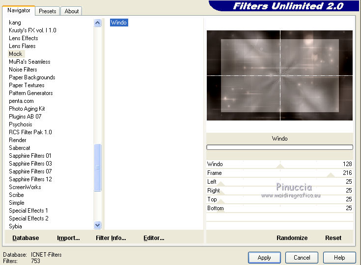 Effets>Modules Externes>Filters Unlimited 2.0 - Mock - Windo, par défaut.