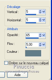 33. Effets>Effets 3D>Ombre portée, couleur d'avant plan (couleur 2).