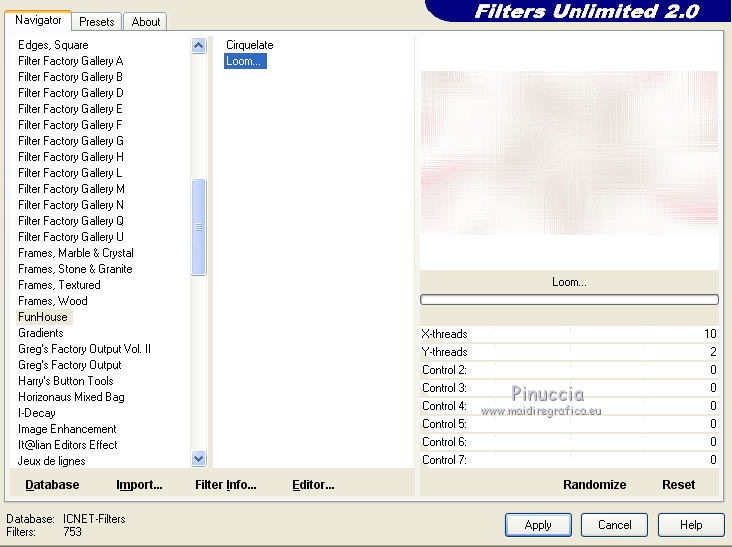 8. Effets>Modules Externes>Filters Unlimited 2.0 - Funhouse - Loom.