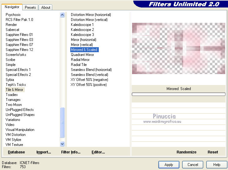 13. Effets>Modules Externes>Filters Unlimited 2.0 - Tile & Mirror - Mirrored Scaled.