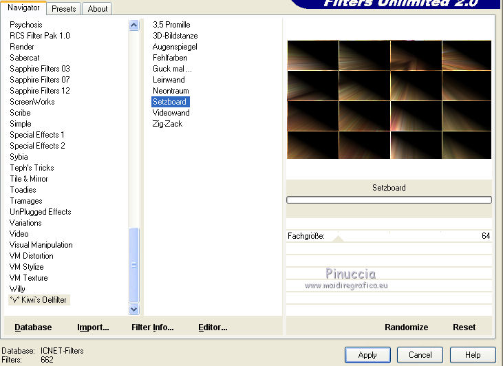 9. Effets>Modules Externes>Filters Unlimited 2.0 - Kiwi's Oelfilter - Setzboard.