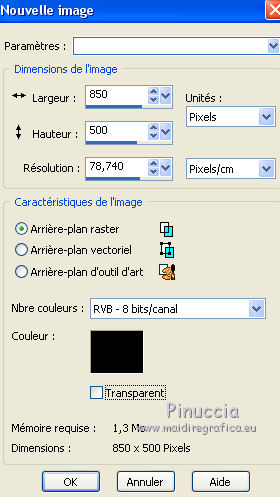 1. Ouvrir une nouvelle image 850 x 500, arrière plan noir