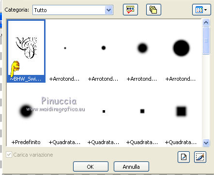 la denominazione del pennello inizia con il segno "~"; per questo, seguendo le regole dell'ordine alfabetico, lo troverai all'inizio dell'elenco, prima delle lettere
