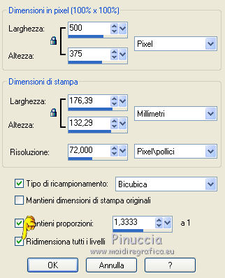 2. Se necessario: Immagine>Ridimensiona, a 500 pixels di larghezza, tutti i livelli selezionato.